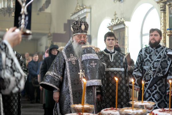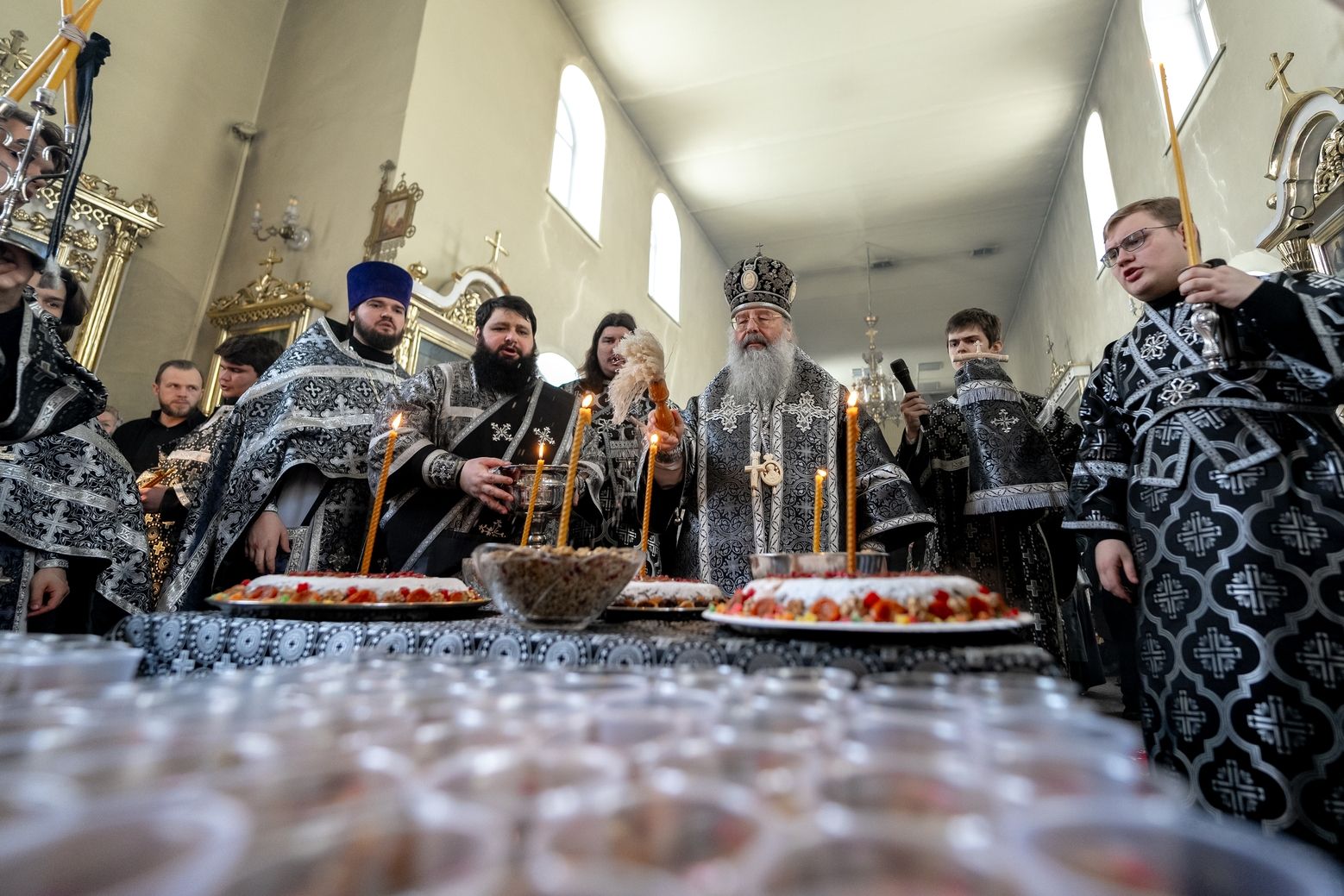 По окончании Литургии митрополит Кирилл совершил молебное пение великомученику Феодору Тирону и освятил коливо. Затем архипастырь обратился к верующим со словом: