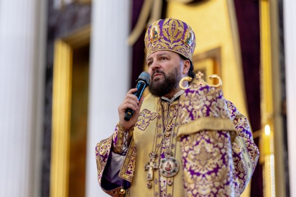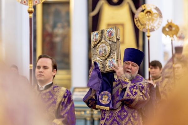 Для меня великая честь сегодня находиться в стенах кафедрального собора града Казани. Это не первое моё посещение вашего города по благословению владыки Кирилла, и я с удовольствием приезжаю поклониться казанским святыням. Сердечно благодарю вас за молитву обо мне, грешном, и за возможность разделить радость молитвенного общения вместе с вами и вашей паствой.