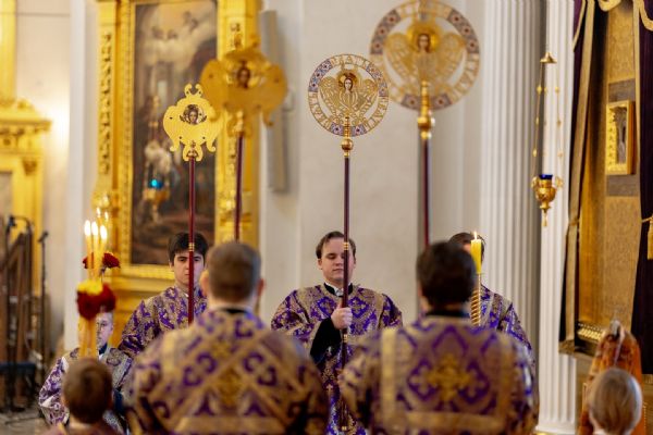 Песнопения исполнил архиерейский смешанный хор под управлением Марины Литвиненко.