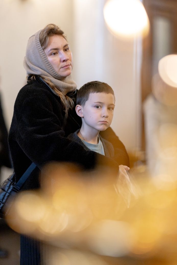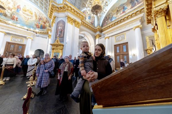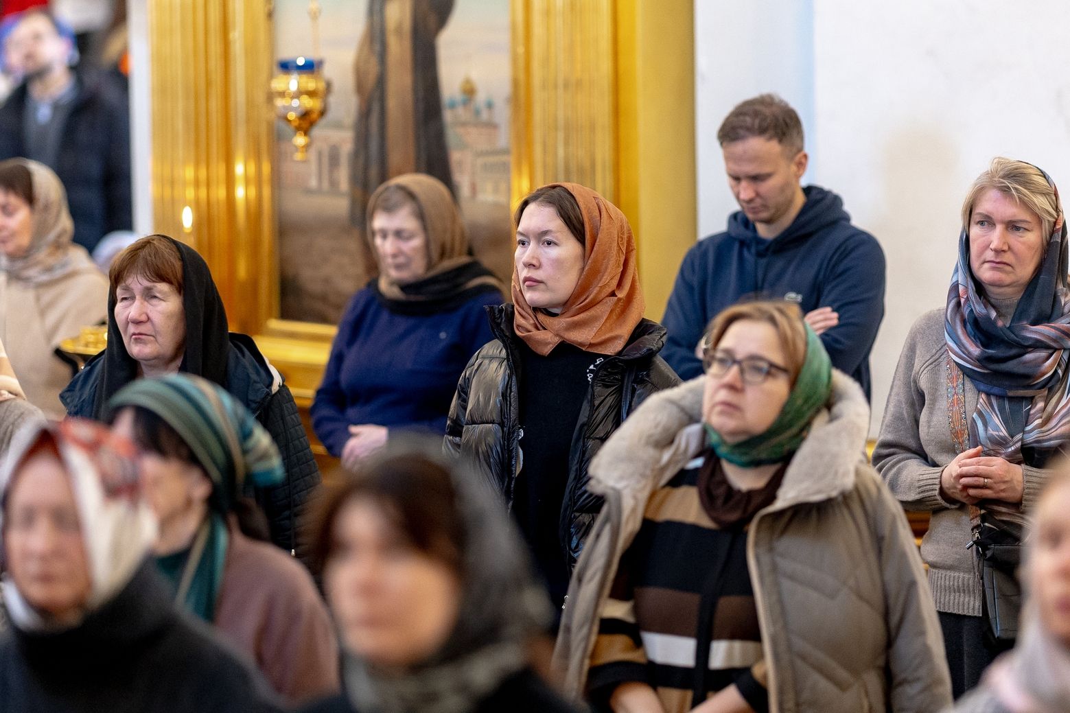 На мирной и сугубой ектениях были вознесены молитвы о Российском воинстве и о мире. По запричастном стихе проповедь произнёс насельник обители иеромонах Гермоген (Рубан).