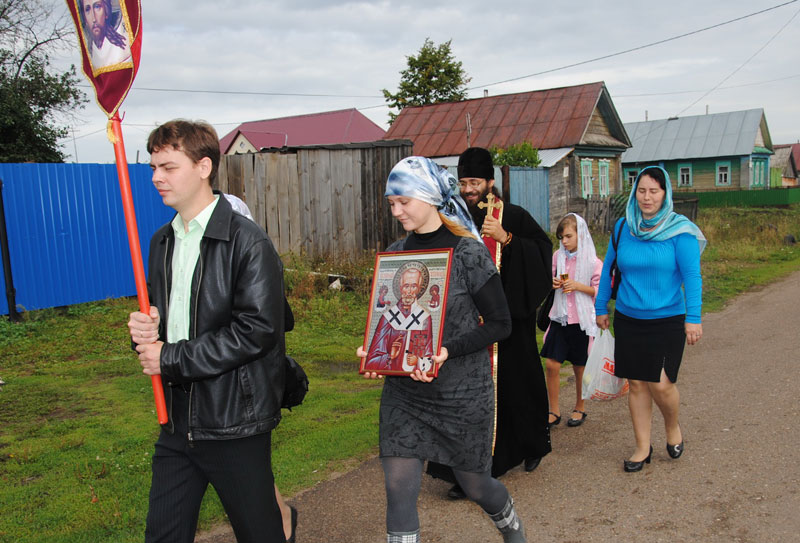 Бабушки встречали иконы со слезами на глазах. Иерей Алексий Ахметзянов, возглавлявший крестный ход, рассказывал о мироточении, случаях чудесной помощи, явленных Господом от икон, помазывал освящённым маслом.