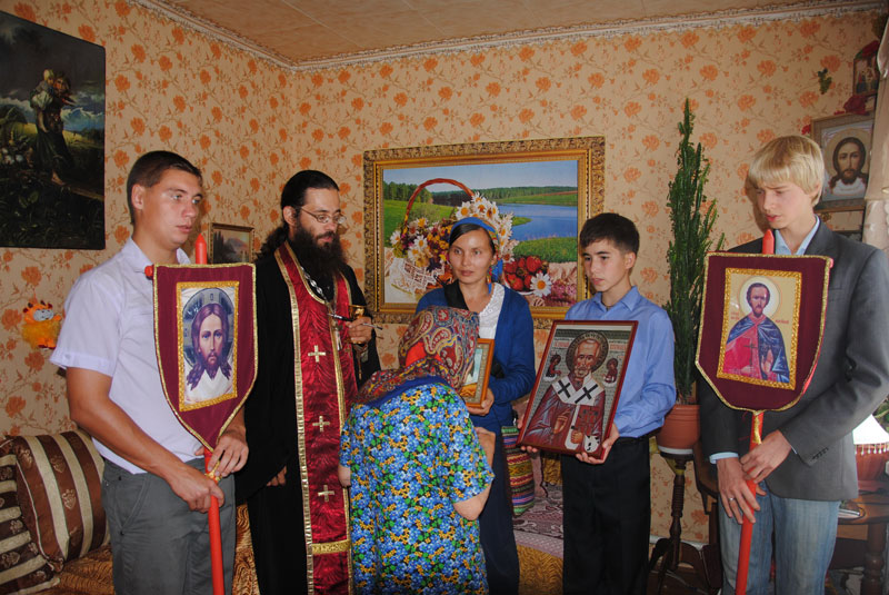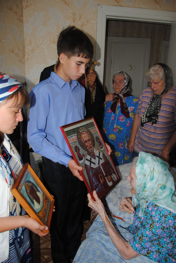 Образы святителя Николая и Пресвятой Богородицы «Спорительница хлебов» несколько раз обильно мироточили начиная с весну текущего года. Чтобы не лишить престарелых бабушек возможности прикоснуться святыне, ответственная за службу попечения Ахметзянова Л. В. и ребята из Молодёжного отдела решили прийти с иконами к ним домой.