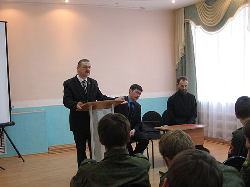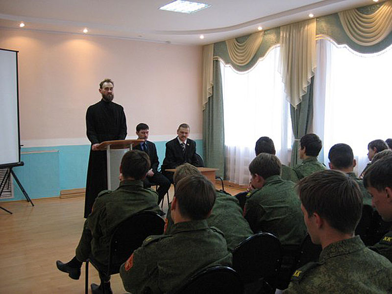 В целях реализации муниципального проекта по формированию убеждений патриотизма, в кадетской школе, расположенной в посёлке Крутая Гора, состоялась встреча со священнослужителями.