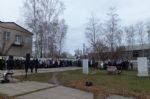 Учащиеся школ, техникума, горожане почтили память жертв репрессий минутой молчания, и возложили венки к памятнику расстрелянным в Спасской тюрьме.