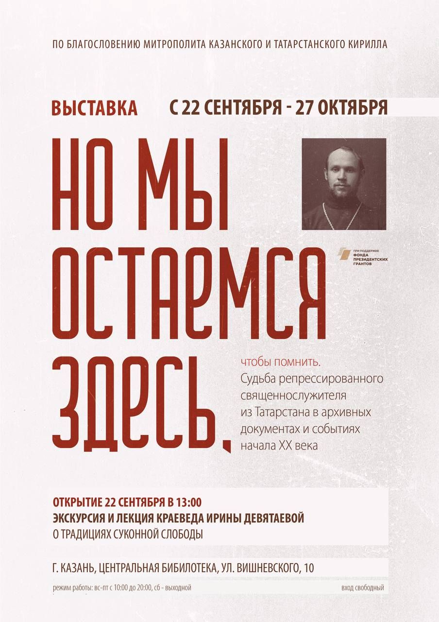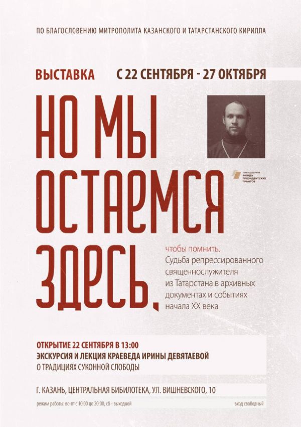 22 сентября в Центральной библиотеке города Казани состоится открытие выставки «Но мы остаёмся здесь», посвящённой епископу Феофану (Еланскому), выпускнику Казанской духовной академии.