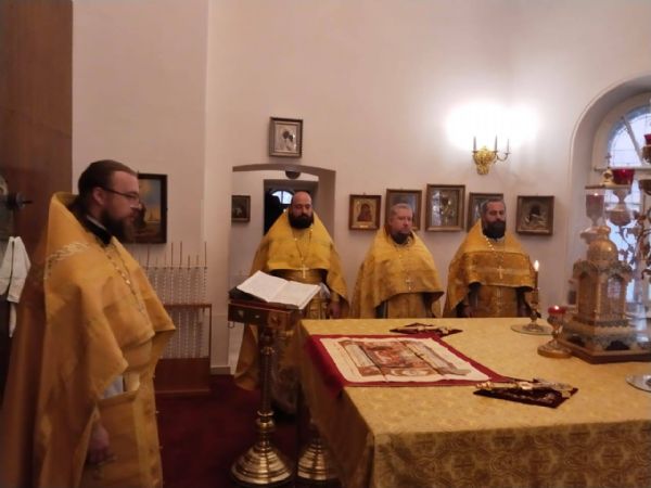 Проведение круглого стола предварило служение Божественной литургии. Богослужение совершил руководитель епархиального миссионерского отдела священник Александр Ермолин в сослужении помощников благочинных по миссионерской работе в священном сане.