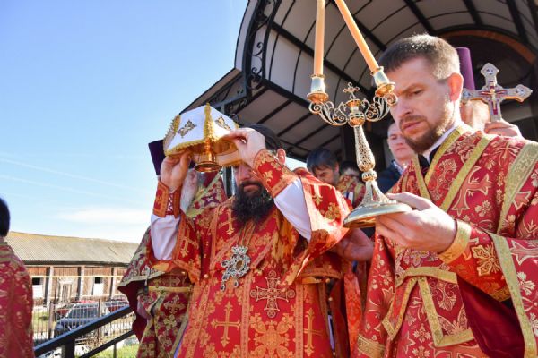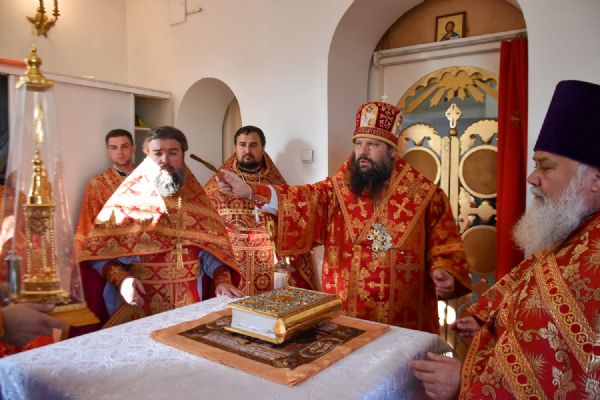 В завершение богослужения архипастырь с духовенством совершили поклонение Кресту, после чего он был занесен в алтарь. Епископ Гавриил обратился к верующим со словом: