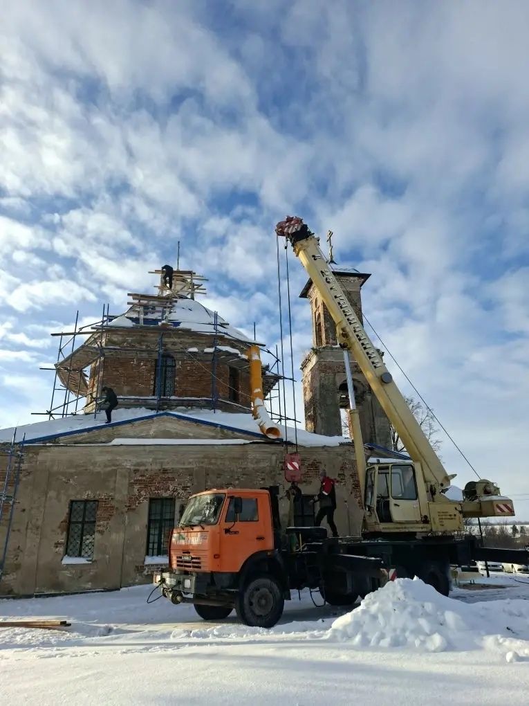 После завершения чина освящения купола и кресты были установлены на возрождающийся храм.