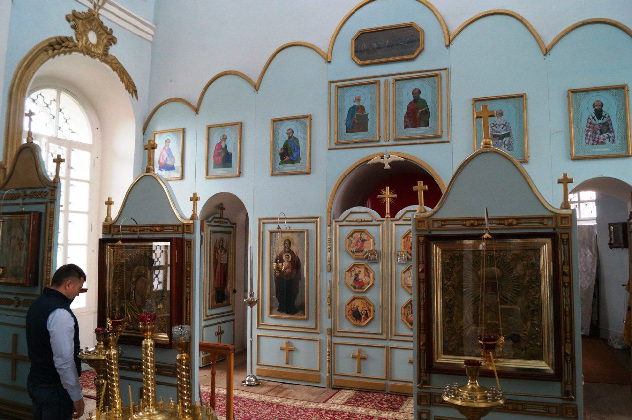 Следующим пунктом поездки стало село Тогашево, в центре которого высится позднебарочная Покровская церковь, построенная в конце XVIII века. Гости осмотрели церковь и часовню в честь святителя Николая Чудотворца, и пообщались с настоятелем храма иереем Сергием Манушиным. Отец Сергий рассказал об истории храма и его реставрации в настоящее время. Проводилась она известным казанским церковным старожилом Виктором Андреевичем Лошадкиным, который приходится родственником праведному Федоту Карповичу, почитаемому в соседних селах Арышхазда и Карповка.