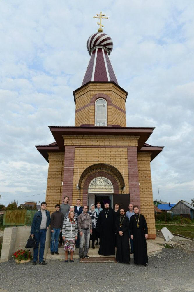 После этого казанцы посетили приход в селе Ленино-Кокушкино. Небольшой храм в честь Казанской иконы Божьей Матери был построен здесь в 2012 году. Настоятель храма иерей Сергий Мельников и председатель приходского совета Ольга Вагизова рассказали казанским гостям о проблемах прихода. К сожалению, в селе с населением в две тысячи человек, до сих пор не работает воскресная школа. Помимо этого, необходимо активизировать работу с молодежью. Руководитель миссионерского отдела высказал свои рекомендации по организации работы с населением.
