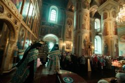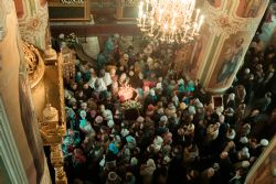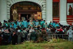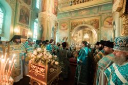 В праздничный день Благовещенский собор был переполнен. Среди молившихся были настоятельница Свято-Успенского Зилантова монастыря игумения Сергия (Лакатош), представители казачества, приходских молодежных братств, сестры Свято-Никольского сестричества милосердия.
