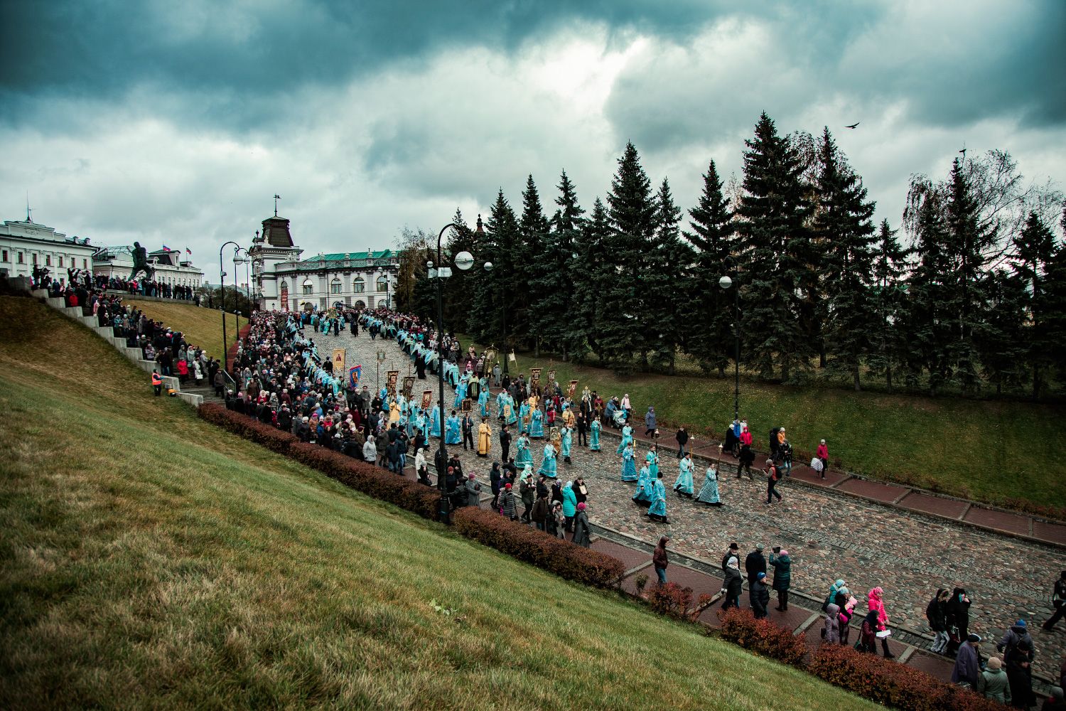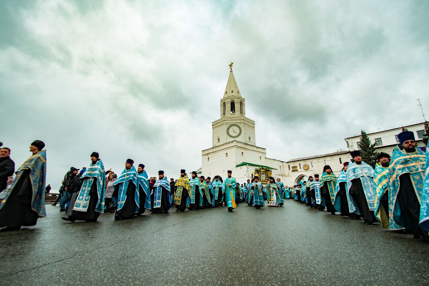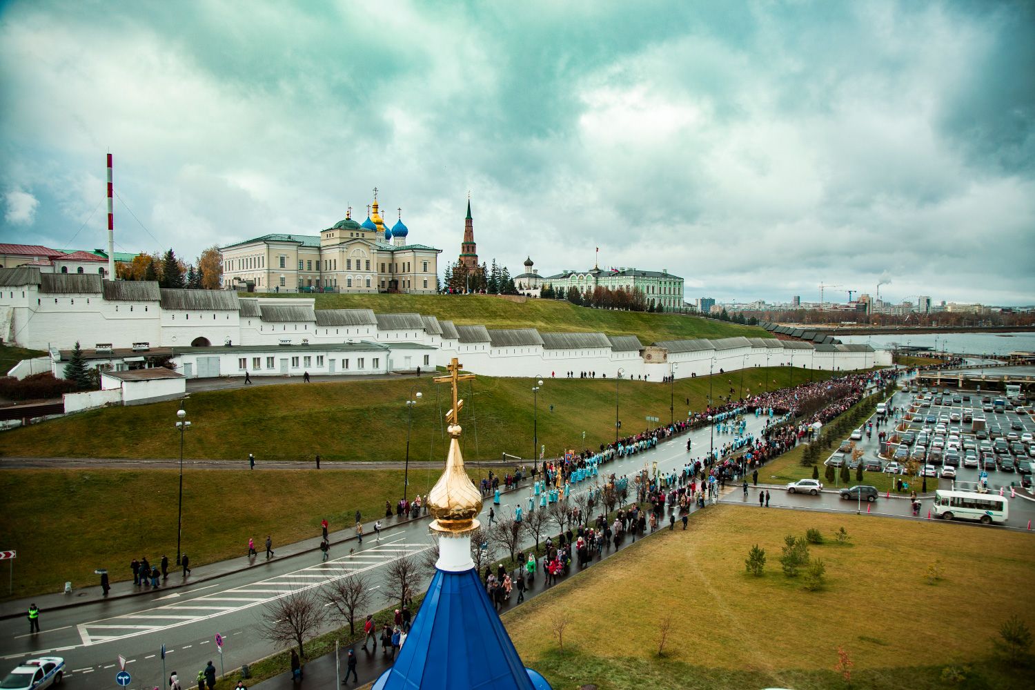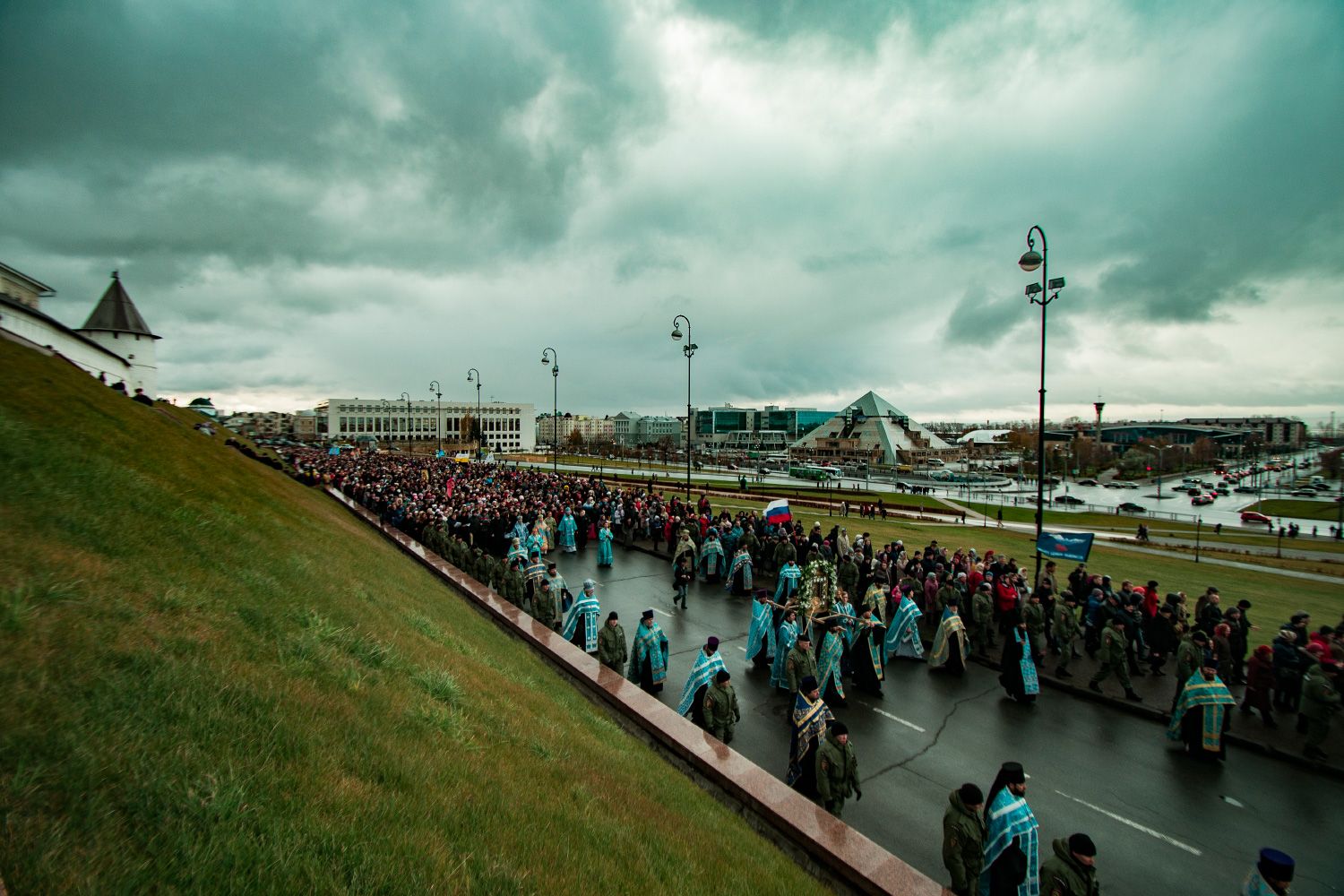 По завершении Литургии духовенство и многочисленные миряне во главе с архипастырями Татарстанской митрополии приняли участие в традиционном крестном ходе к месту обретения святыни в Казанско-Богородицкий монастырь. Участие в шествии приняли тысячи верующих — жителей города Казани, паломников из городов Татарстана и других регионов Российской Федерации.