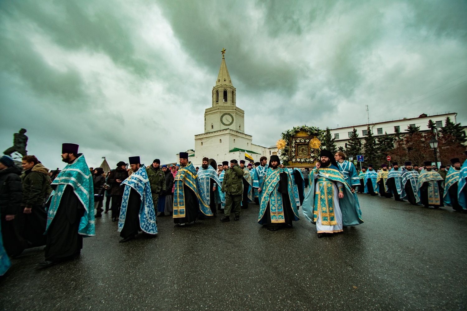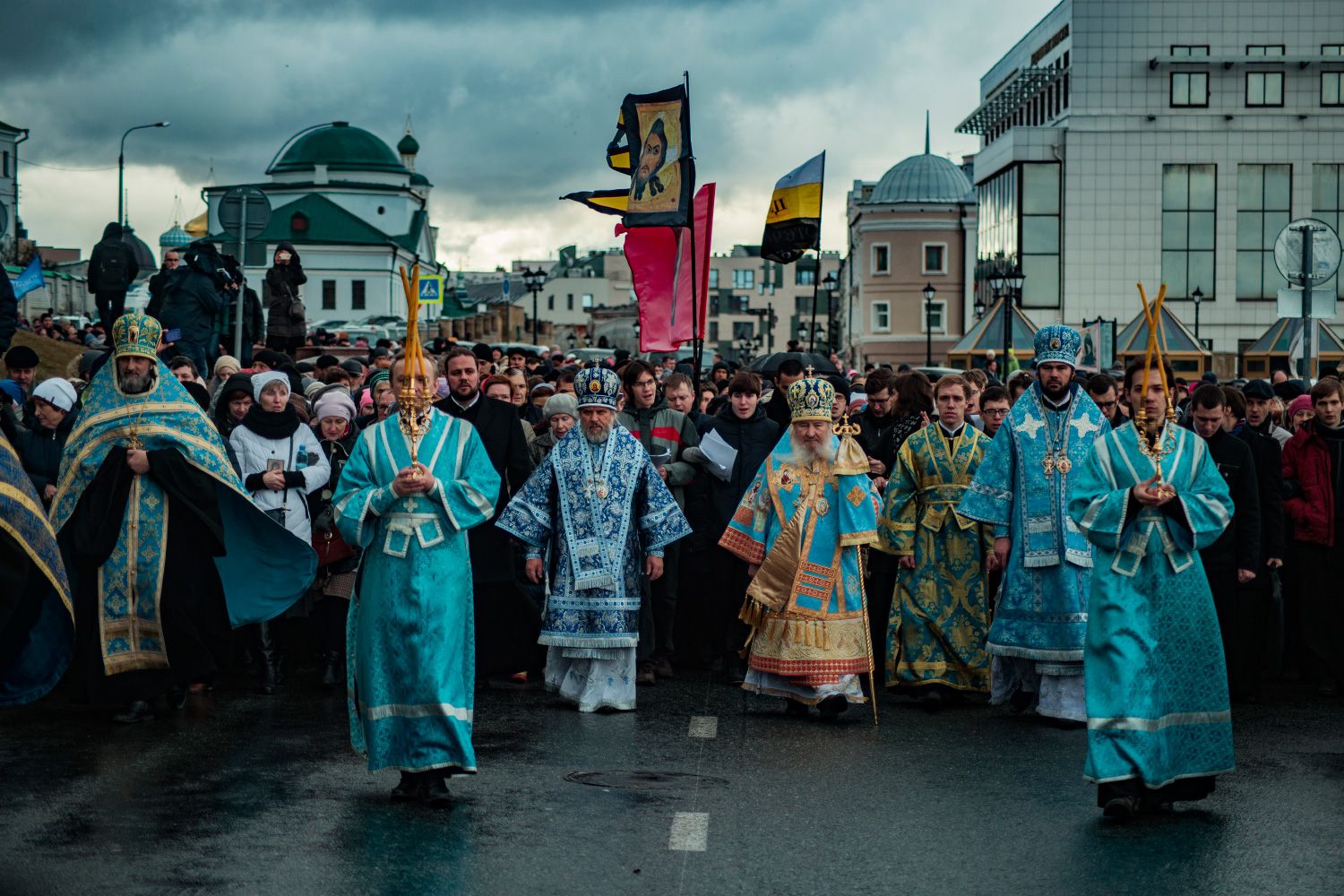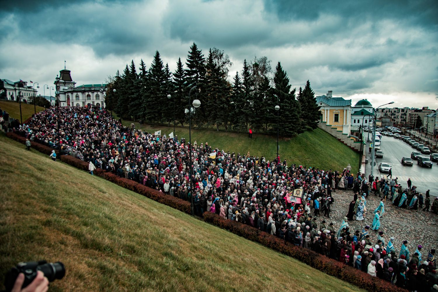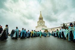 По завершении Литургии духовенство и многочисленные миряне во главе с архипастырями Татарстанской митрополии приняли участие в традиционном крестном ходе к месту обретения святыни в Казанско-Богородицкий монастырь. Участие в шествии приняли тысячи верующих — жителей города Казани, паломников из городов Татарстана и других регионов Российской Федерации.
