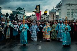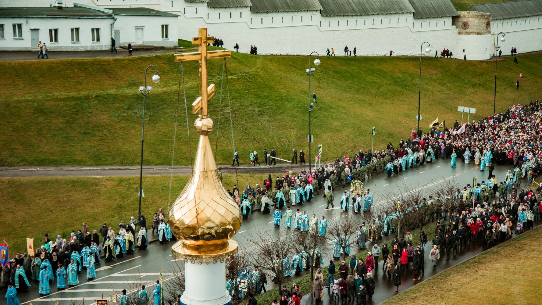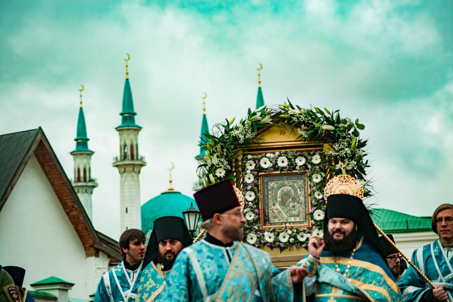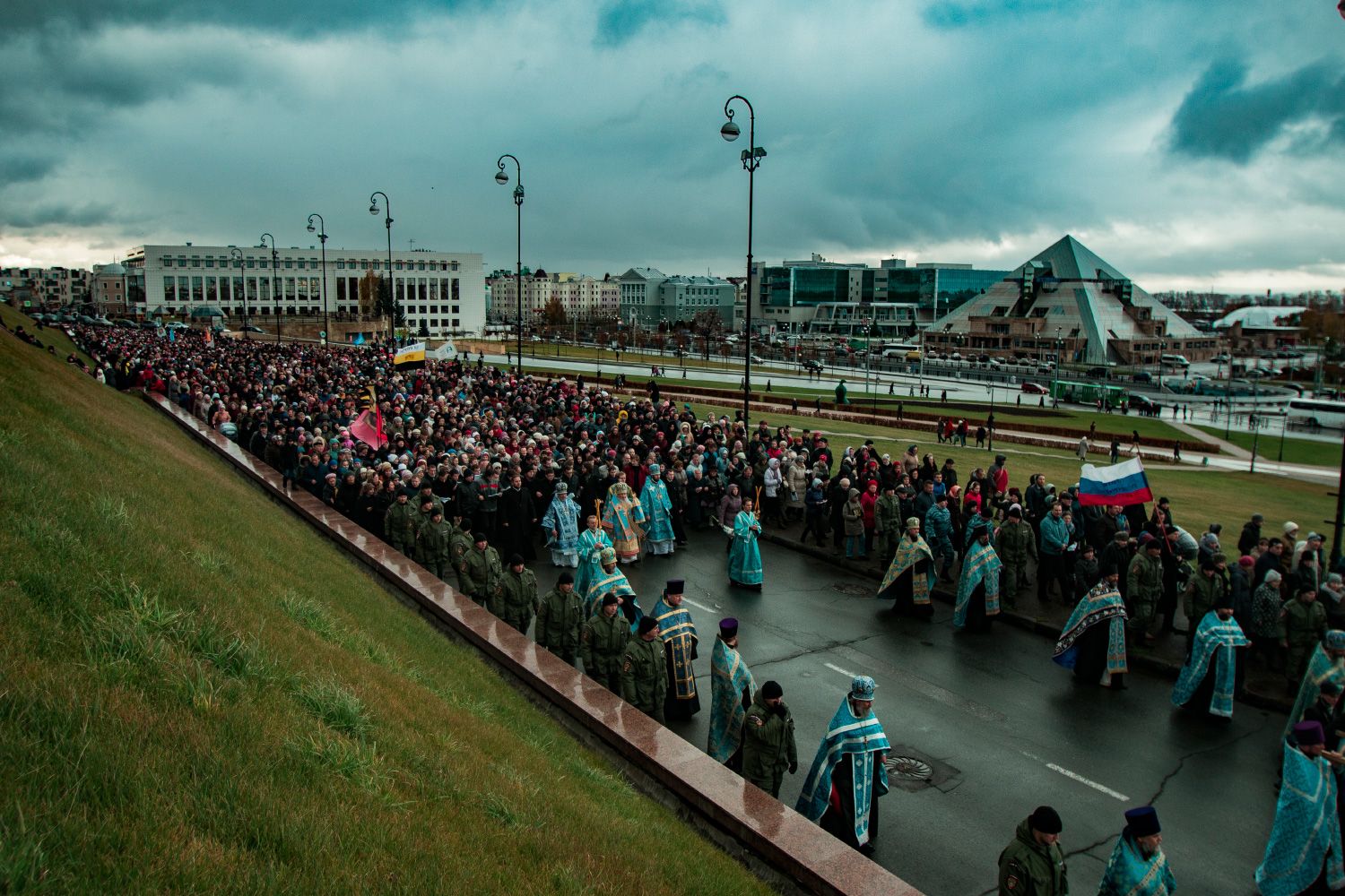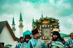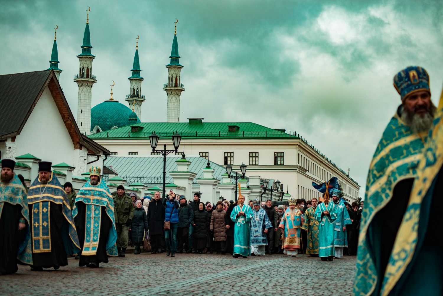 По завершении Литургии духовенство и многочисленные миряне во главе с архипастырями Татарстанской митрополии приняли участие в традиционном крестном ходе к месту обретения святыни в Казанско-Богородицкий монастырь. Участие в шествии приняли тысячи верующих — жителей города Казани, паломников из городов Татарстана и других регионов Российской Федерации.