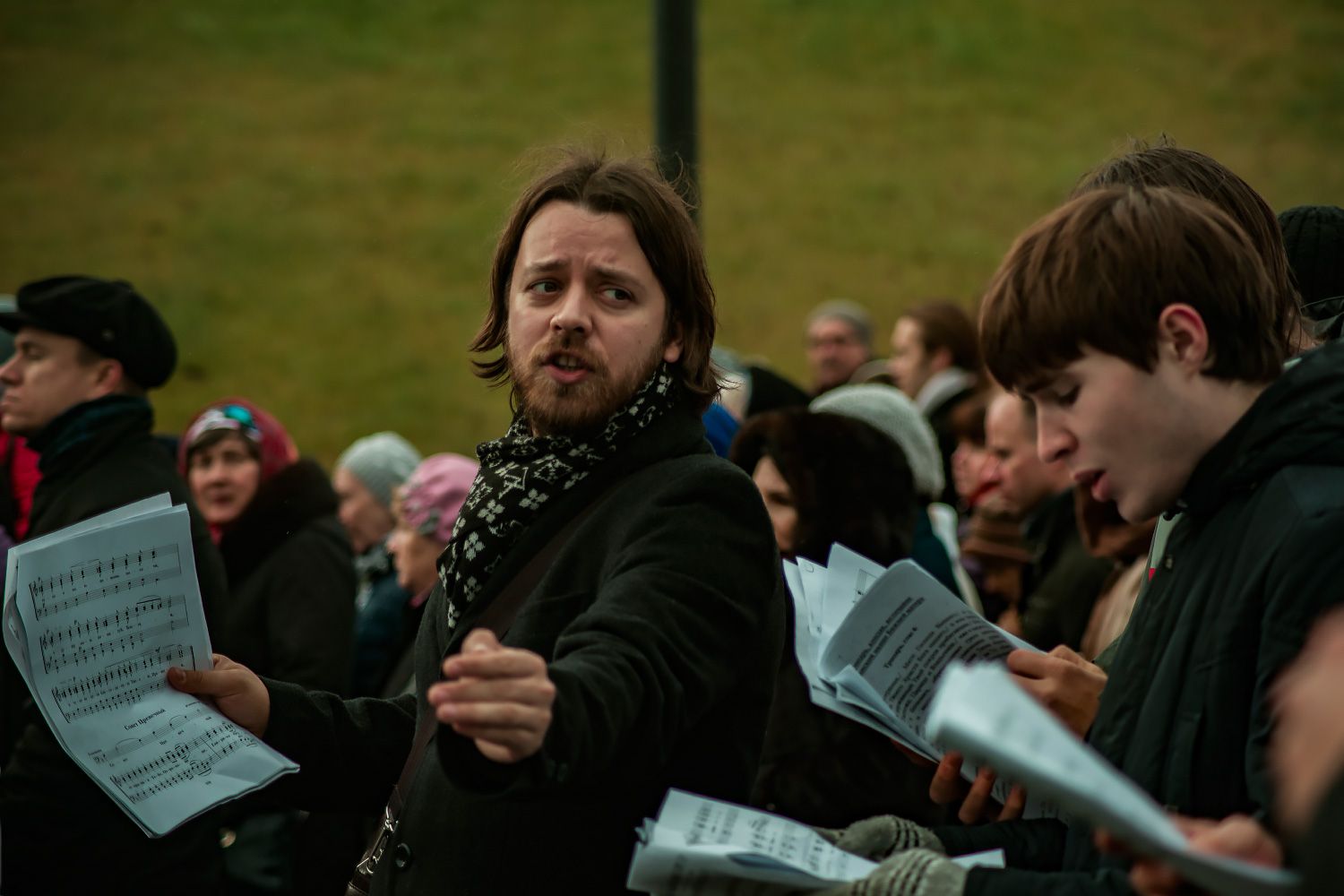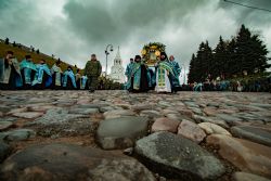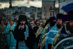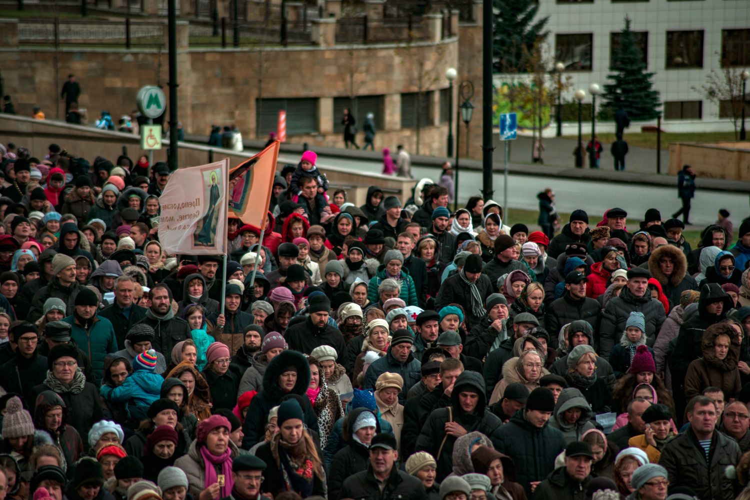 Во время шествия приходские активисты раздали собравшимся тексты молитвенных песнопений и руководили пением.