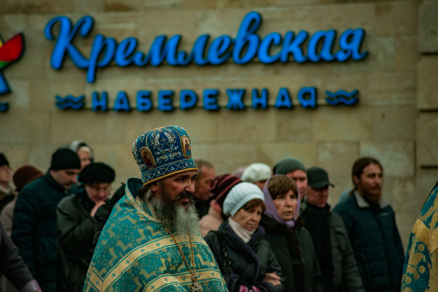 За богослужением в историческом центре Казани Его Высокопреосвященству сослужили архипастыри Татарстанской митрополии епископ Альметьевский и Бугульминский Мефодий и епископ Чистопольский и Нижнекамский Пармен, наместник Казанско-Богородицкого мужского монастыря игумен Марк (Виленский), секретарь Казанской епархии протоиерей Владимир Самойленко, благочинный города Казани протоиерей Алексий Чубаков, первый проректор Казанской духовной семинарии игумен Евфимий (Моисеев), настоятели городских храмов и монастырей, благочинные епархий, входящих в состав митрополии.