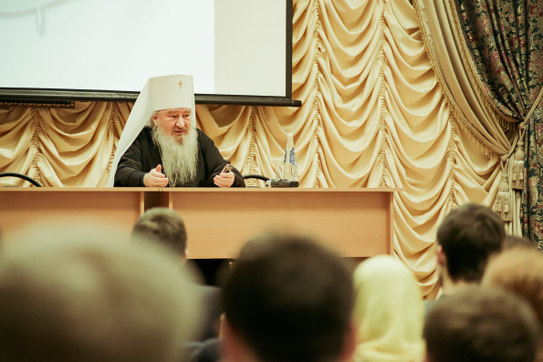 Начиная общение, владыка Феофан обратился к юношам и девушкам. В своем слове он затронул тему смысла человеческой жизни, особое внимание обратив на пороки современного общества и понятие свободы человека.