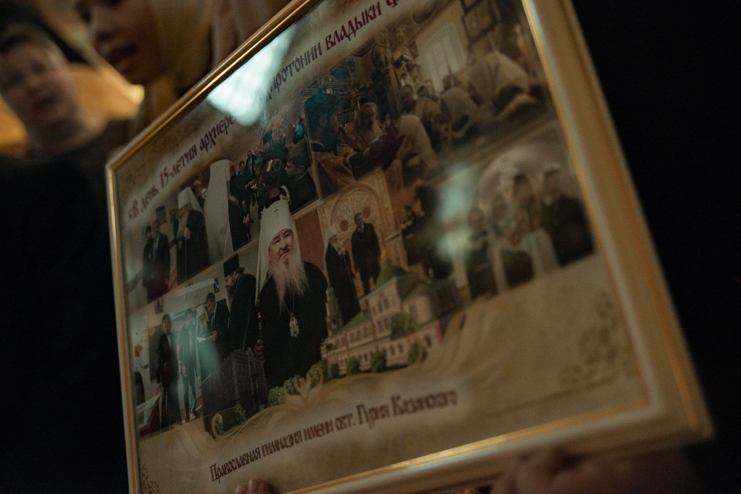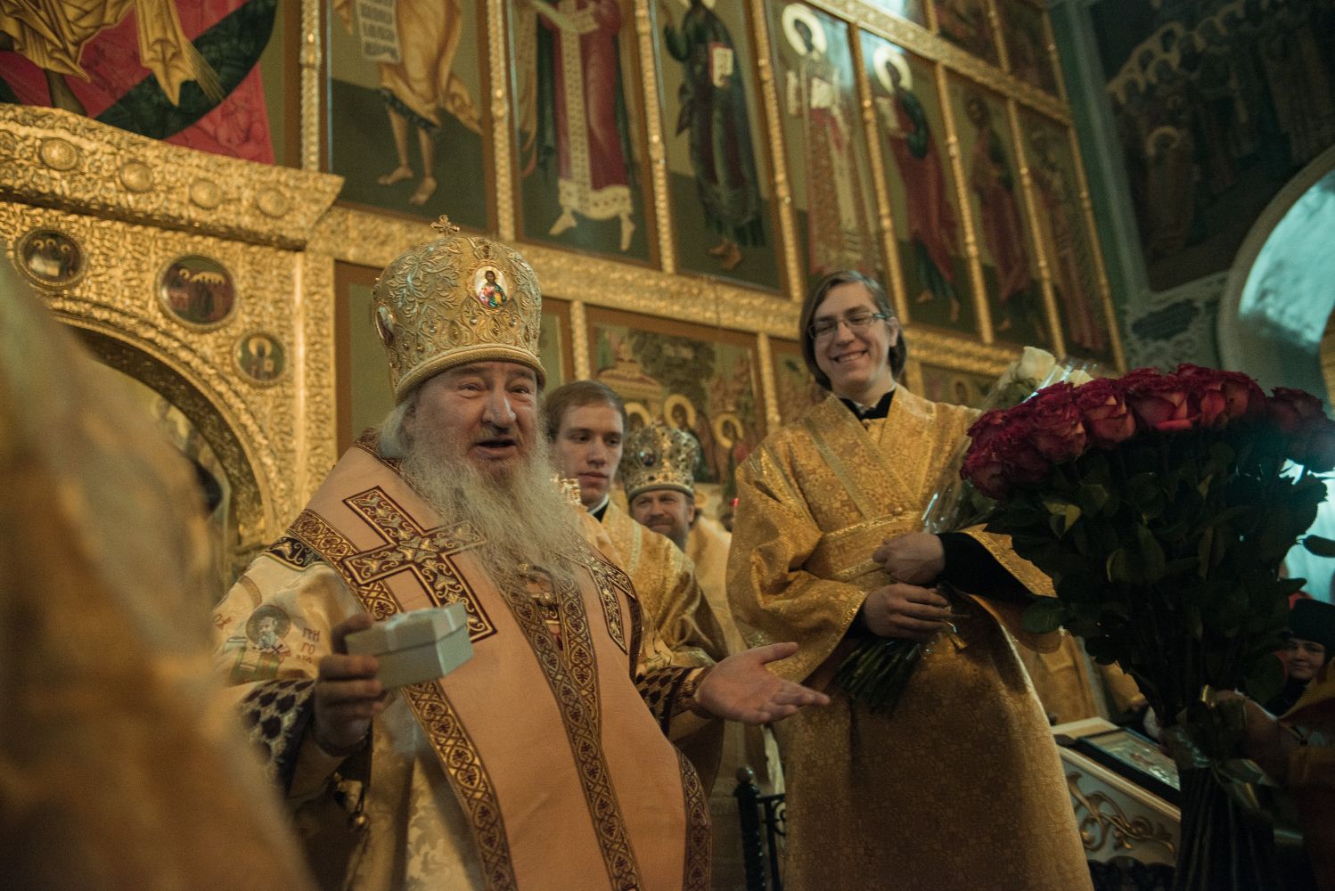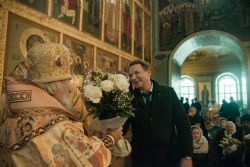Поздравив правящего архиерея от лица духовенства Казанской епархии, протоиерей Владимир Самойленко вручил Его Высокопреосвященству образ Казанской иконы Божией Матери, а также ключи от мини-погрузчика, необходимого для работ в епархии.