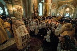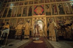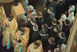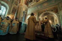 Песнопения исполнял мужской хор под управлением Александра Гринина.
