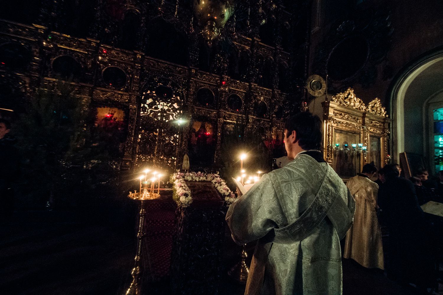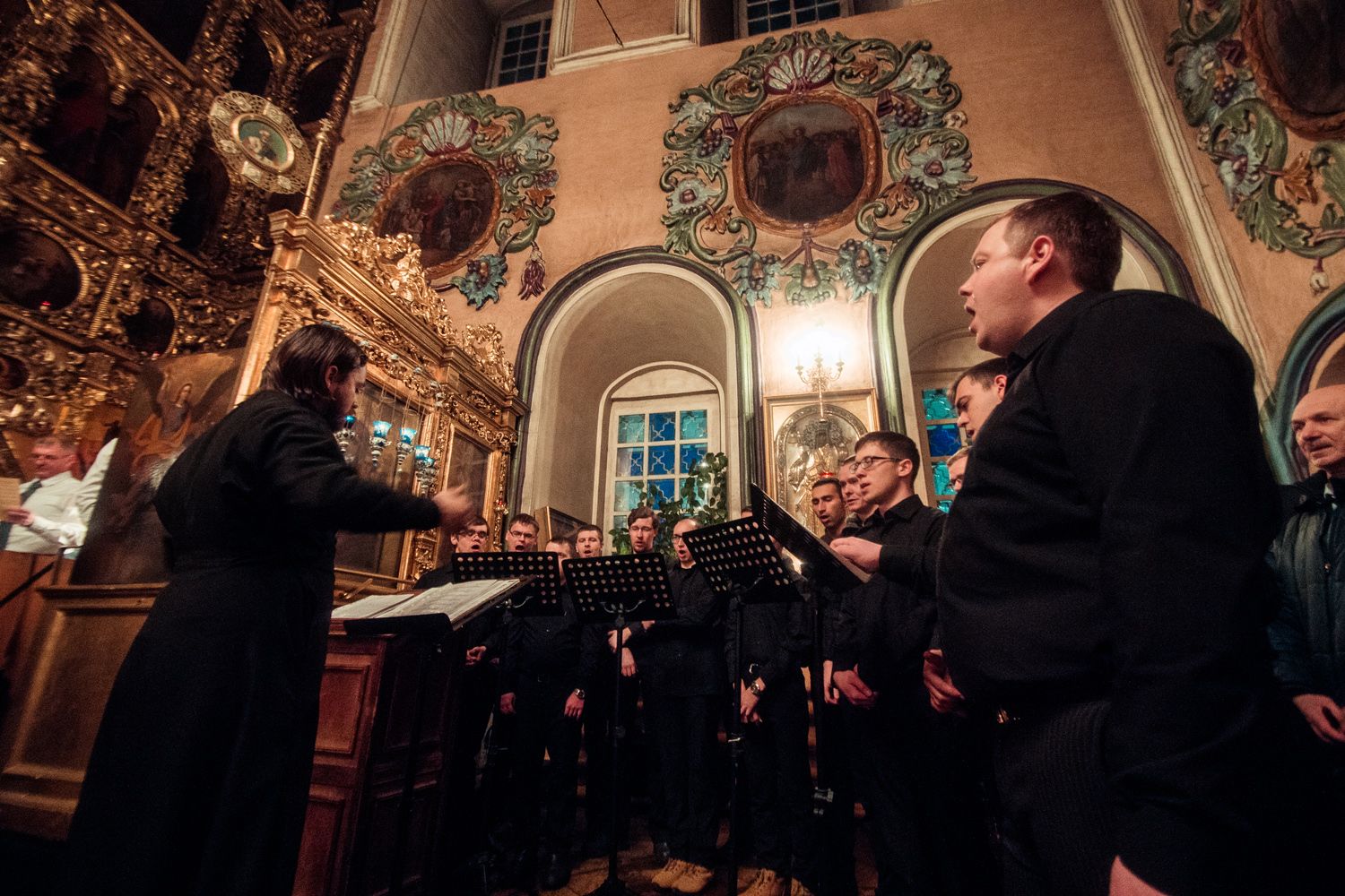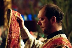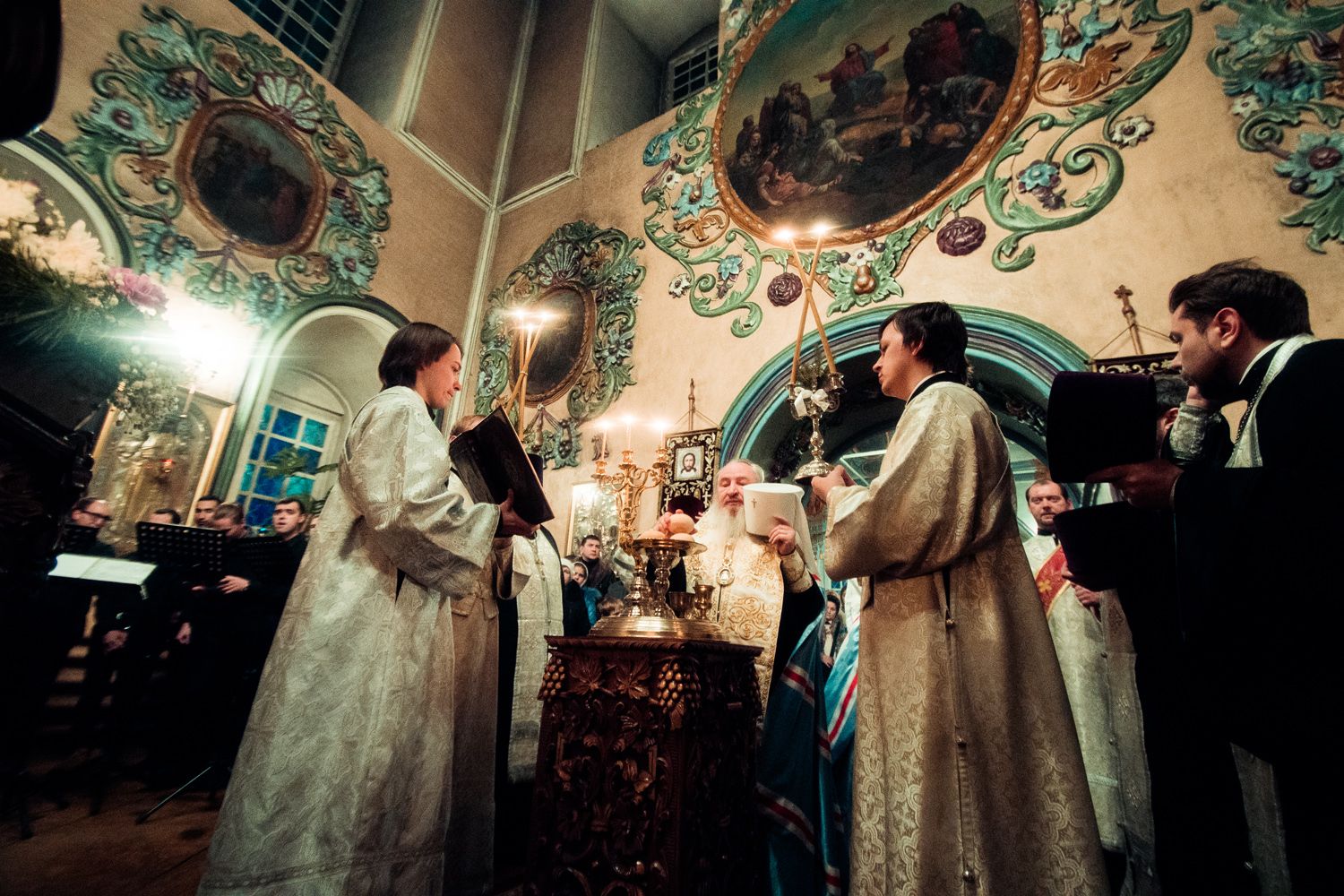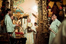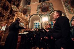 Богослужебные песнопения исполнили мужской архиерейский хор под управлением Дениса Рогова и смешанный хор собора апостолов Петра и Павла под управлением Виктора Кадырова.