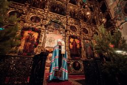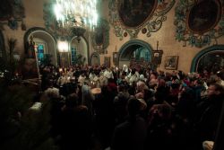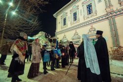 По завершении Литургии духовенство, хор и многочисленные верующие исполнили тропарь, кондак и величание праздника Рождества Христова.