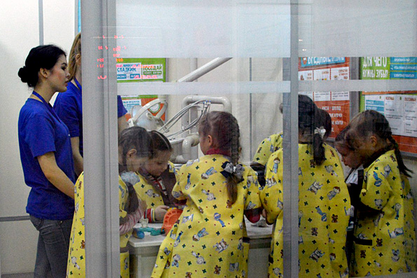 КидСпейс — детский город, каждое здание которого — это мастерская определенного профиля. Более 20 игровых станций: больница, банк, служба спасения, ферма, автосервис, супермаркет, кондитерская, стройка, полиция, салон красоты и многие другие. Путешествуя по городу, ребенок может через игру понять и усвоить основы разных профессий и приобрести полезные навыки. Он научится правильно вести себя в чрезвычайных ситуациях, оказывать первую помощь, менять колеса автомобиля, настраивать микроскоп, вызывать полицию, сажать растения, вести радиопередачу, фотографировать и многое другое.