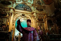 Песнопения за богослужением исполнил смешанный хор кладбищенского храма под управлением Александра Федотова.