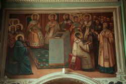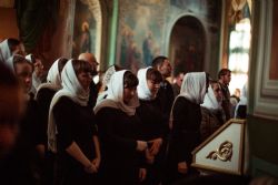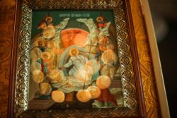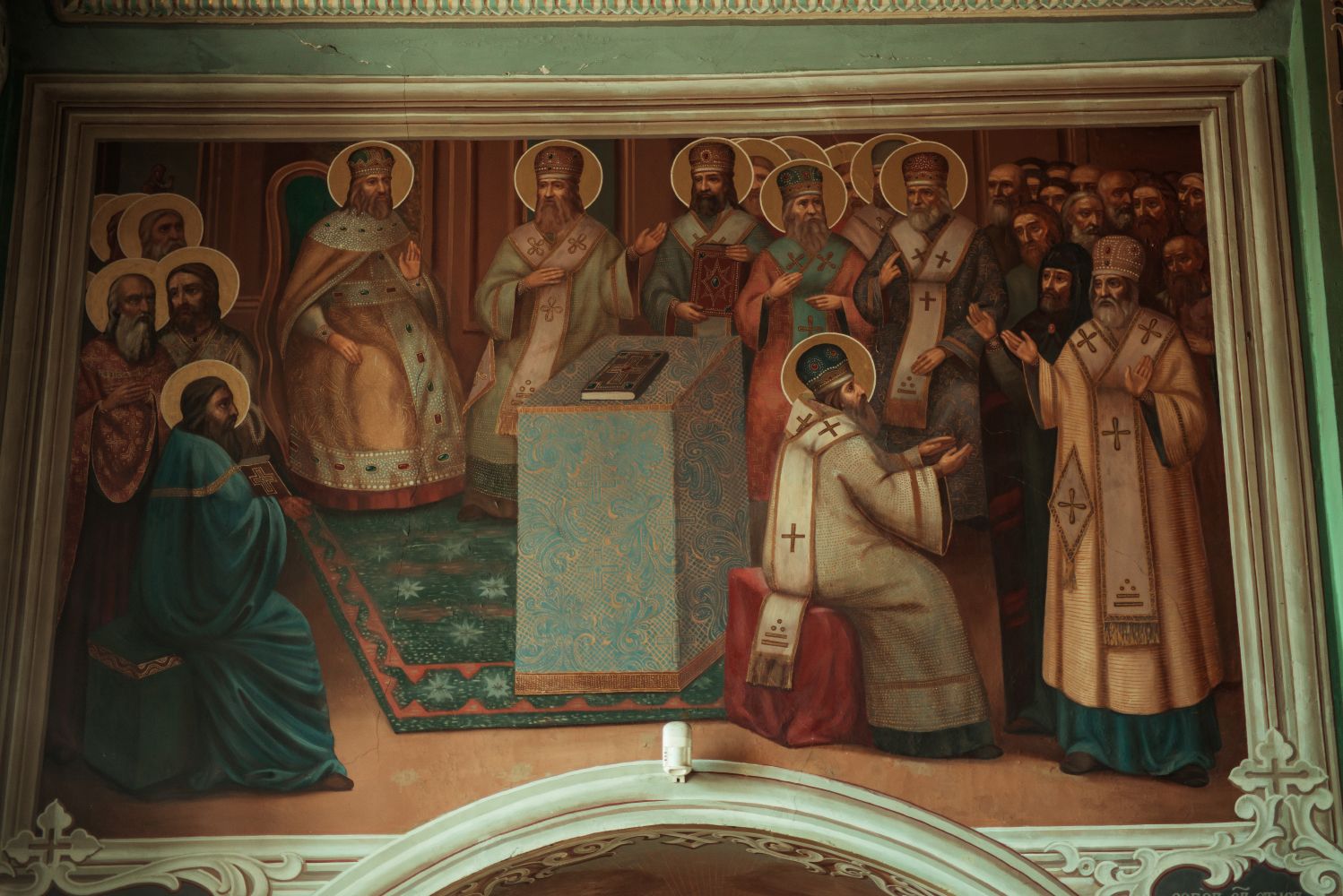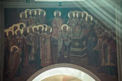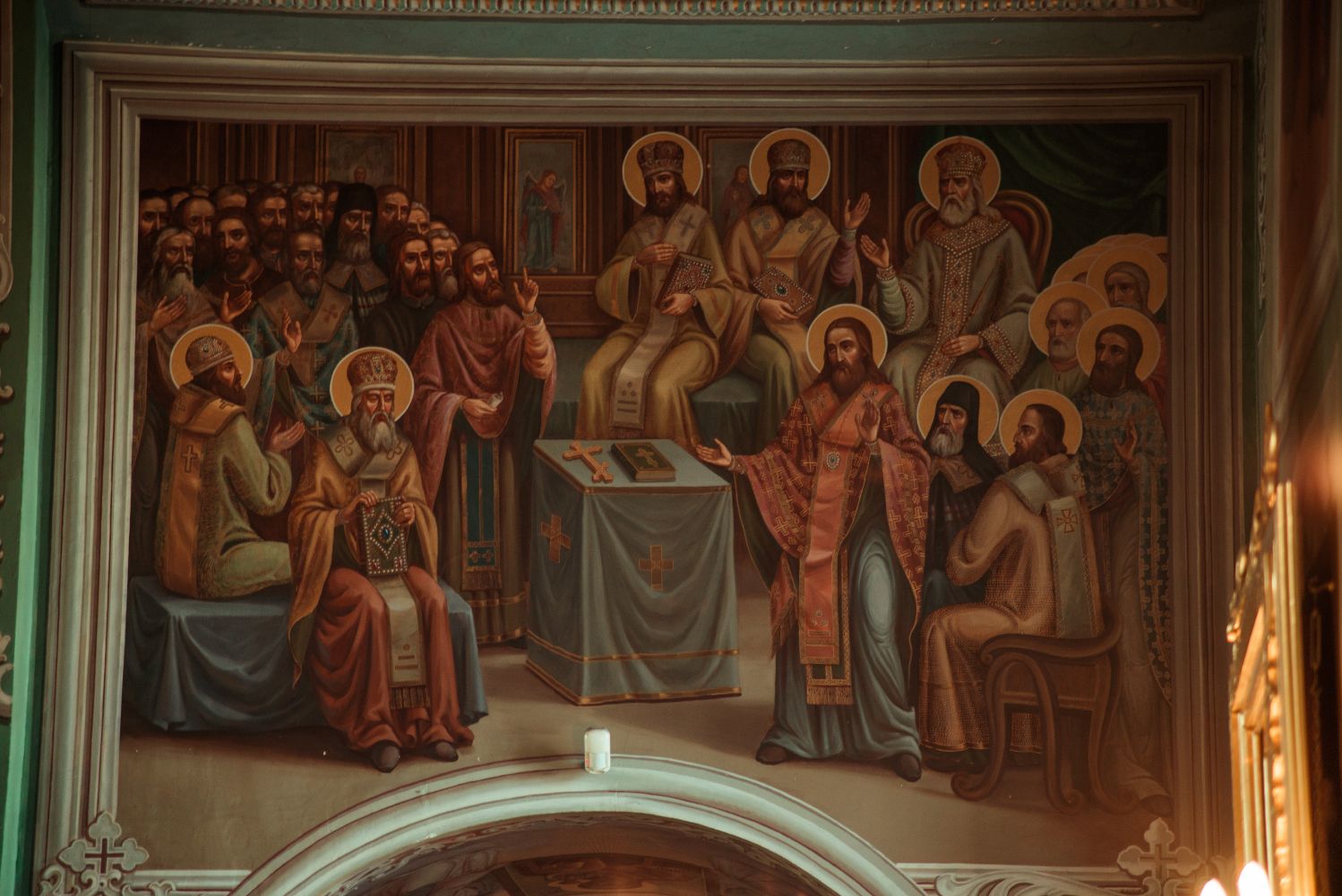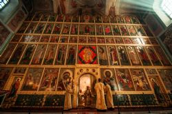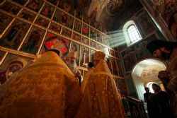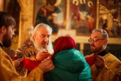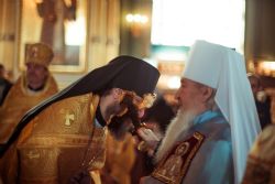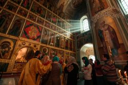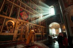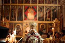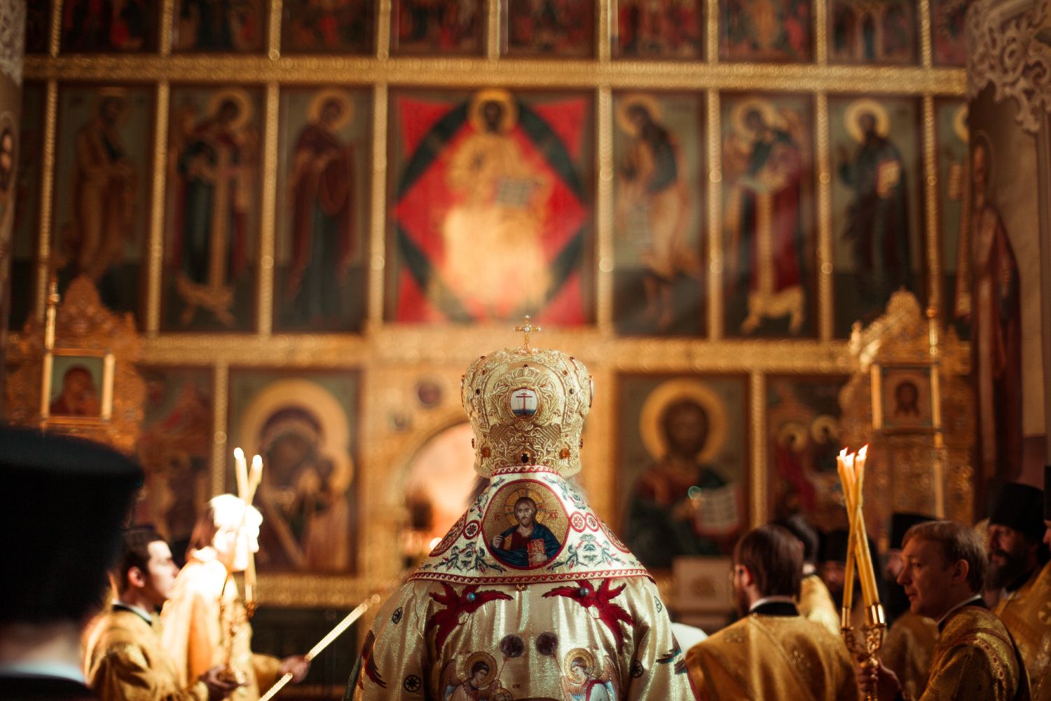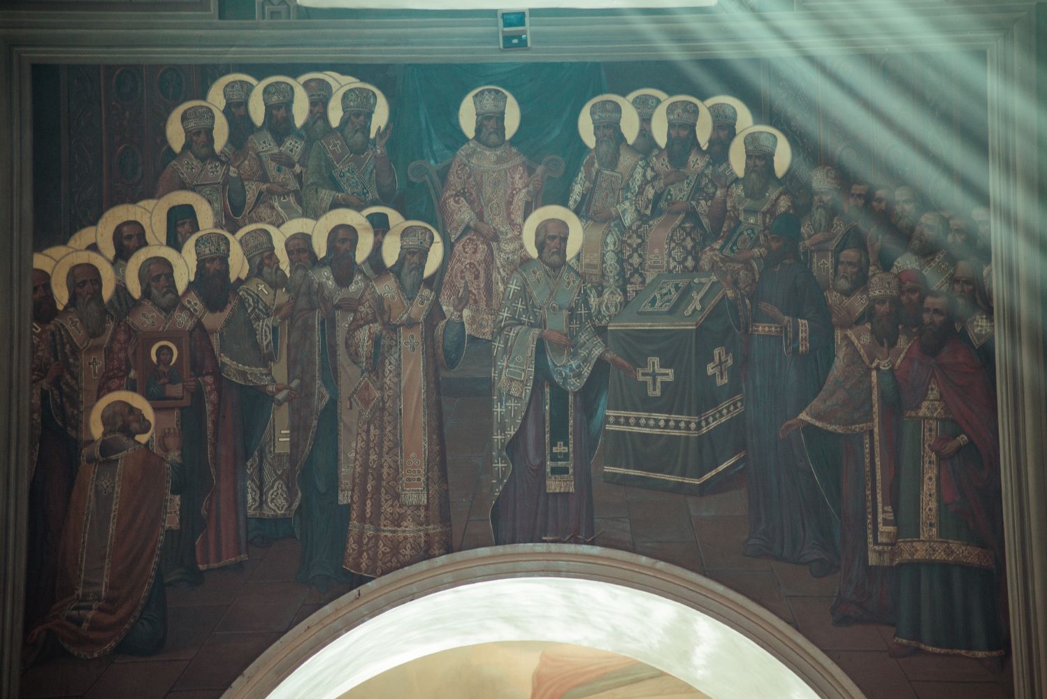 По завершении Литургии собор духовенства во главе с владыкой Феофаном в середине храма совершил чинопоследование Недели Православия.