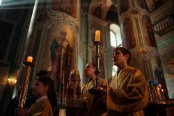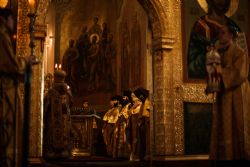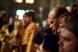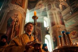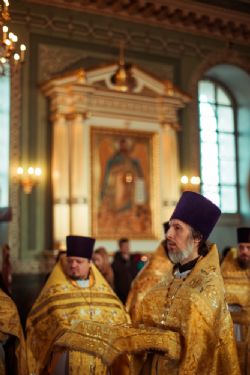 Богослужебные песнопения исполнил архиерейский мужской хор под управлением Дениса Рогова.