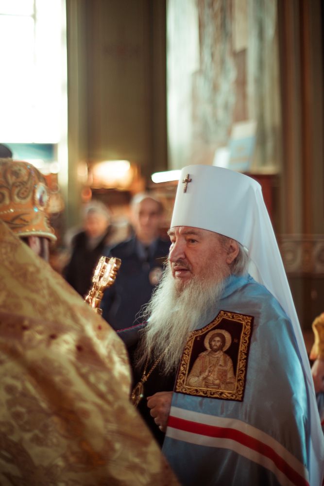 После чтения Святого Евангелия митрополит Феофан обратился к молящимся с архипастырским словом. Его Высокопреосвященство рассказал об истории иконоборческой ереси, установления праздника Торжества Православия, о плодах православной веры.