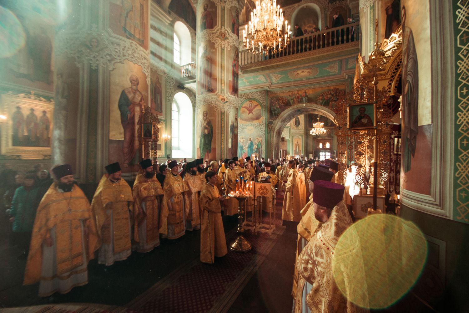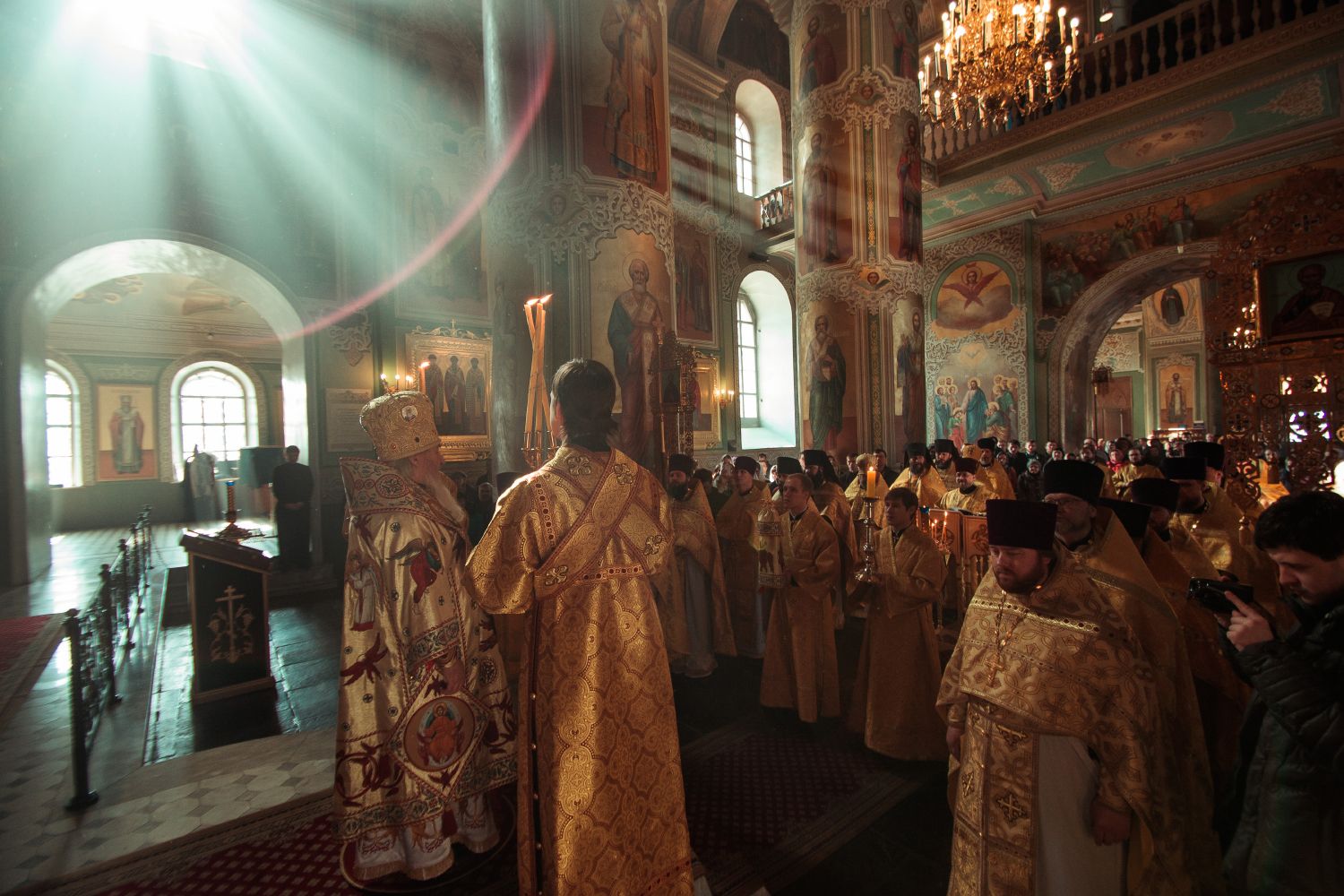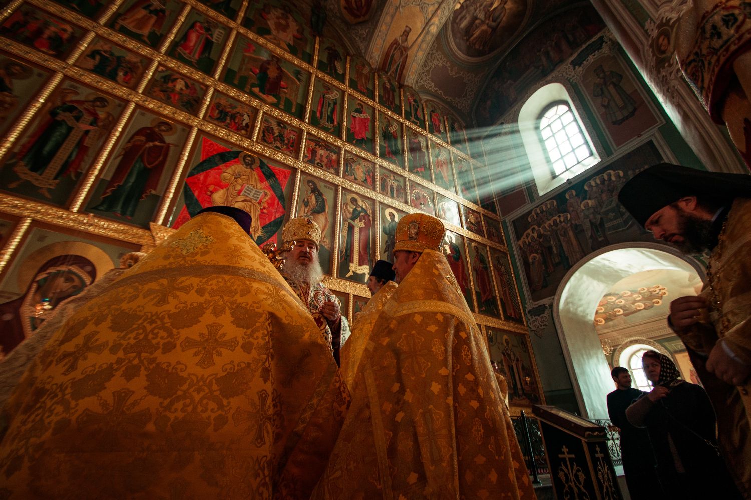 За Литургией Его Высокопреосвященству сослужили настоятели храмов кафедрального города и наместники монастырей Казанской епархии.