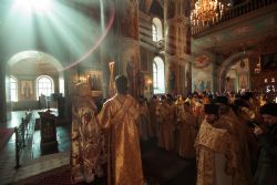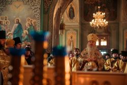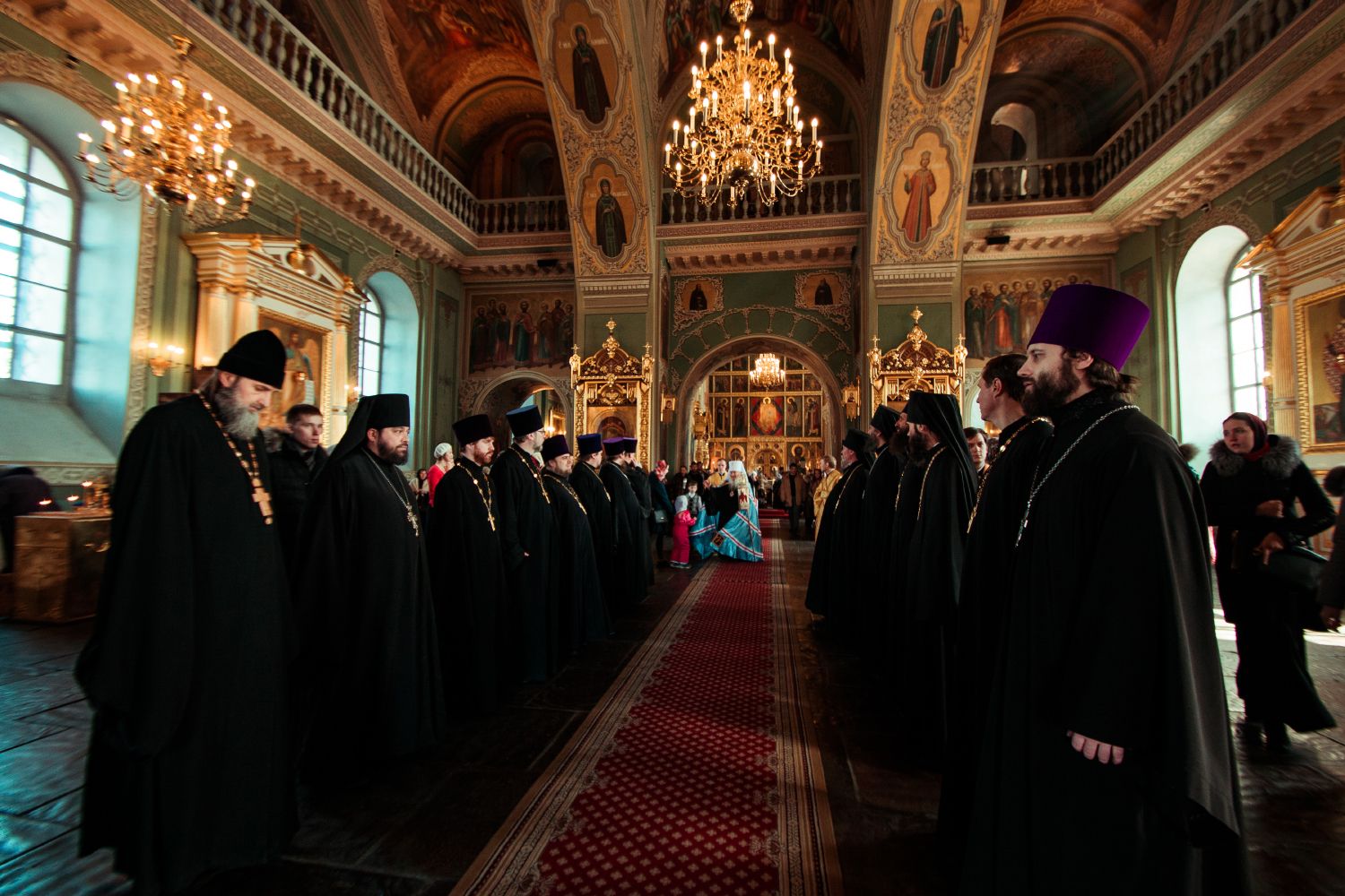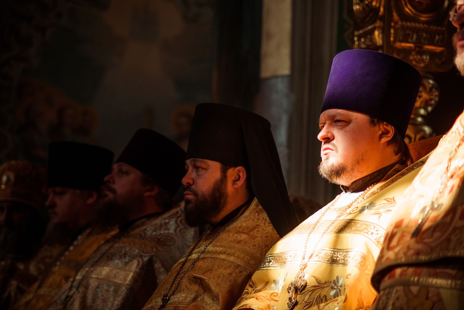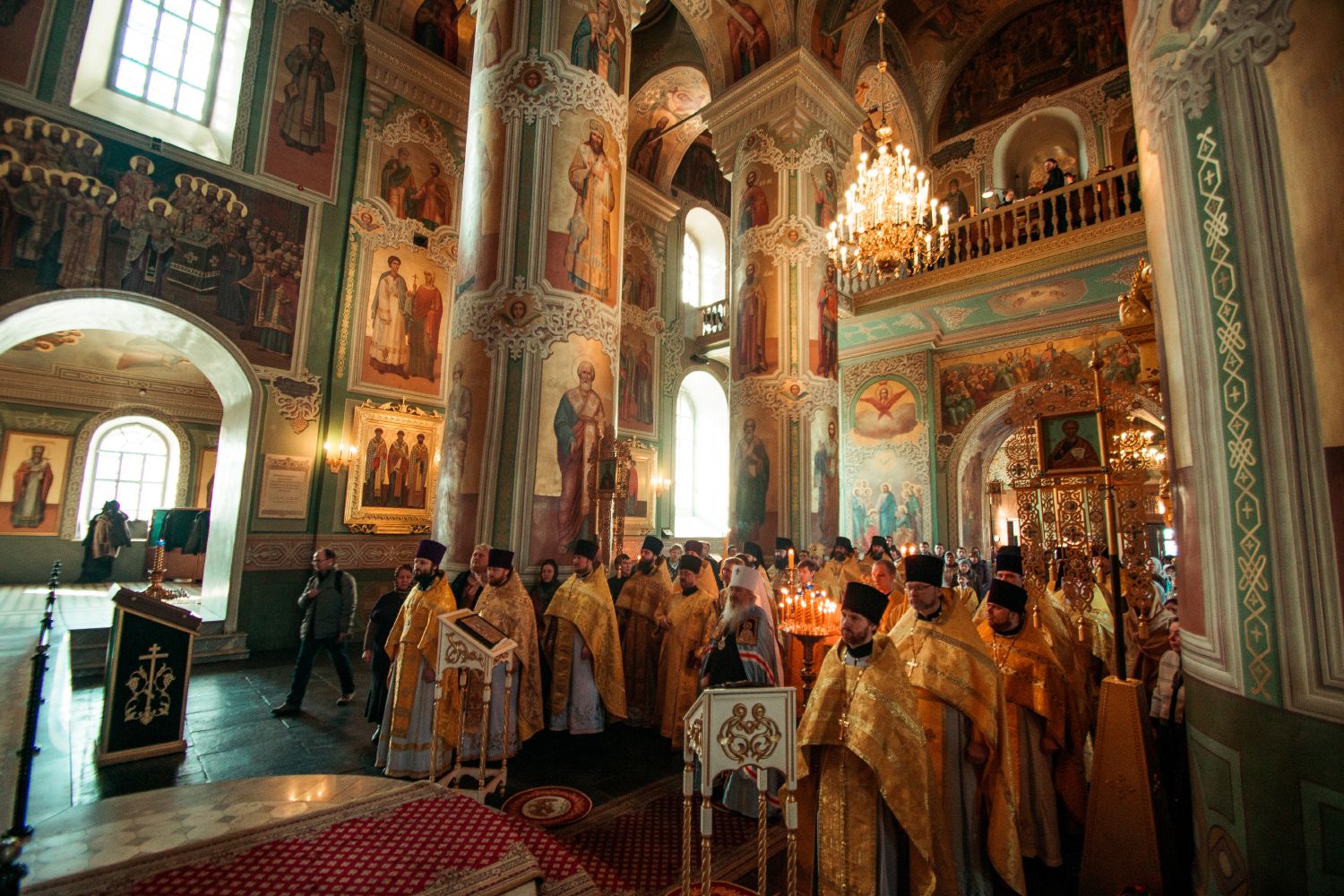 За Литургией Его Высокопреосвященству сослужили настоятели храмов кафедрального города и наместники монастырей Казанской епархии.