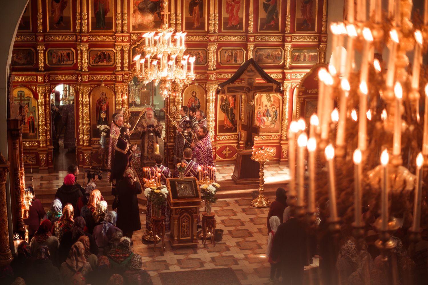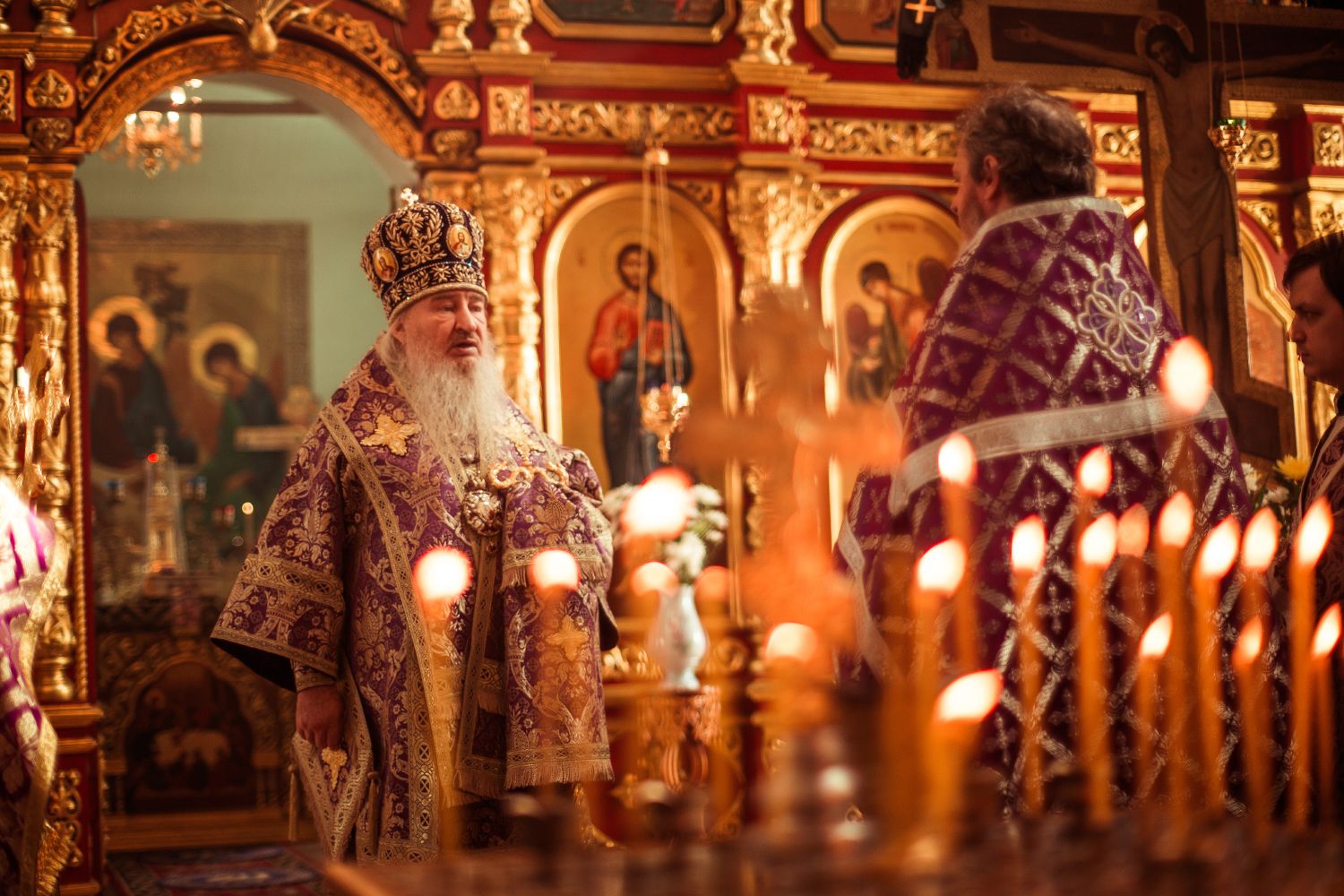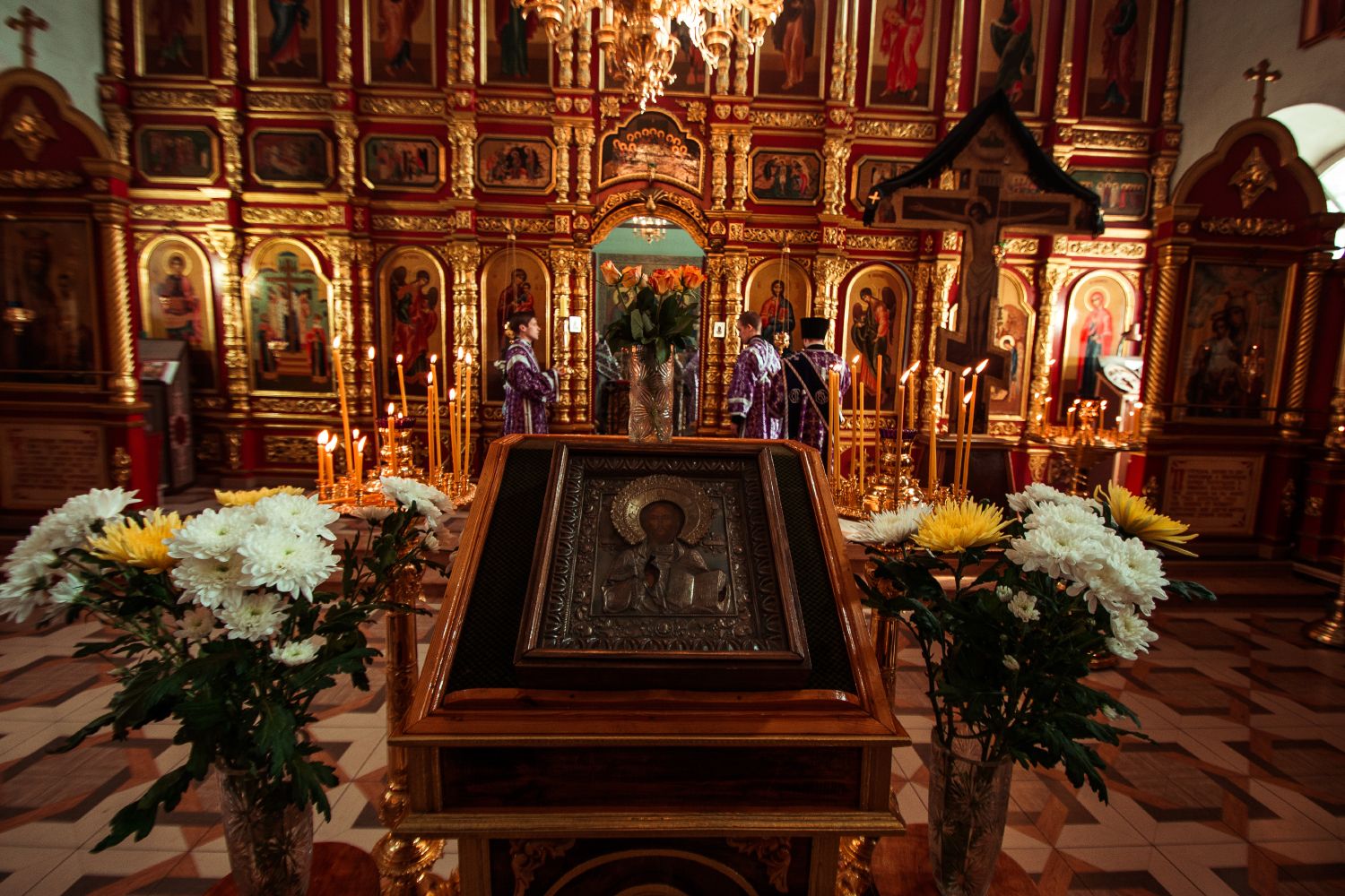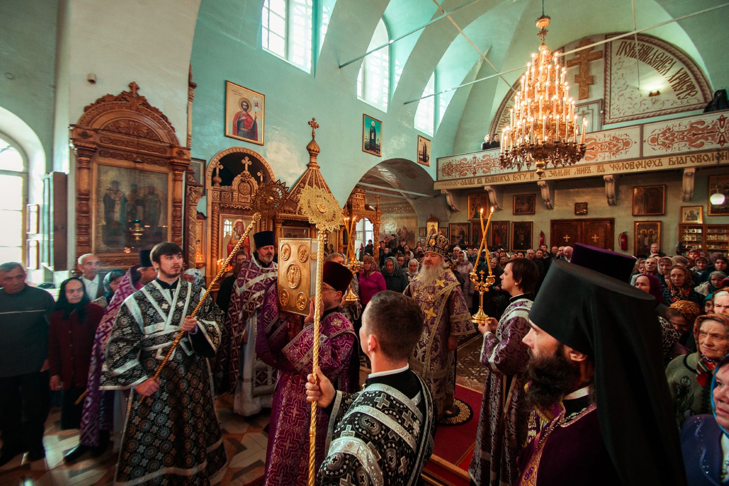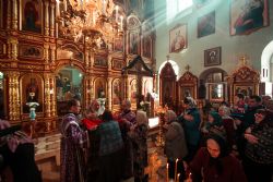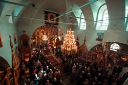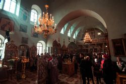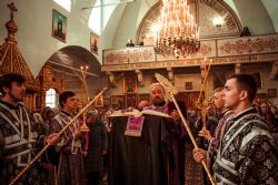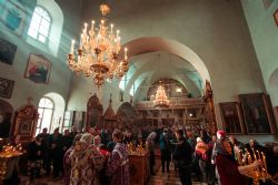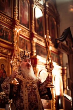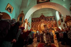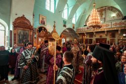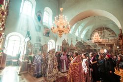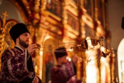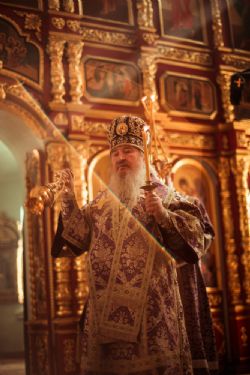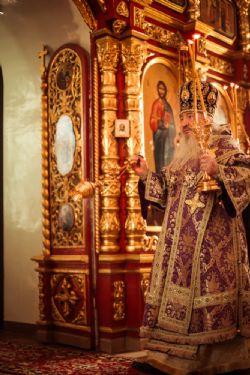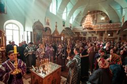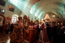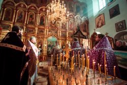 Богослужебные песнопения исполнил архиерейский мужской хор под управлением Дениса Рогова.