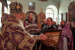В свою очередь, протоиерей Валентин Кострин от своего имени, от имени приходского совета и прихожан поблагодарил Его Высокопреосвященство за посещение храма и данные им наставления. «Это Ваш первый визит в наш храм, в наше благочиние. Мы Ваше святительское наставление будем исполнять, с помощью Божией, будем и дальше трудиться», — сказал священнослужитель.