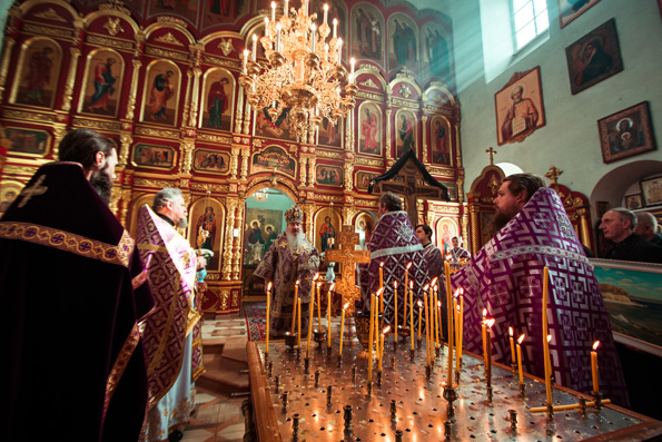 По завершении Литургии правящий архиерей возглавил служение панихиды и обратился к верующим.