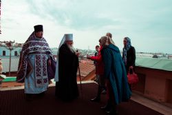 Далее состоялась встреча главы Татарстанской митрополии с Президентом Татарстана Рустамом Миннихановым, прибывшего в Петропавловский собор в ходе рабочего обхода исторической части центра Казани, и общение с благотворителями прихода.