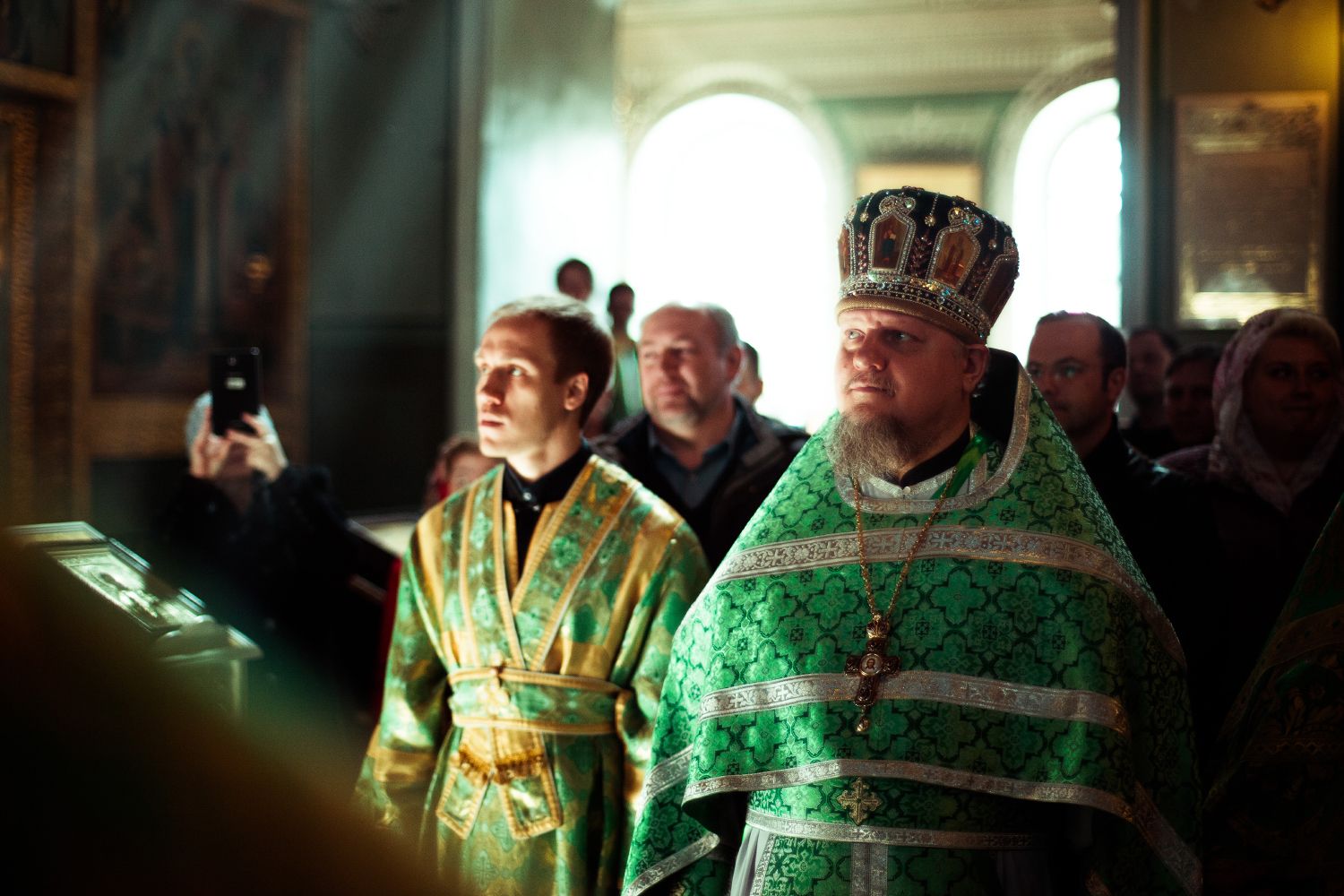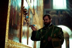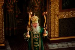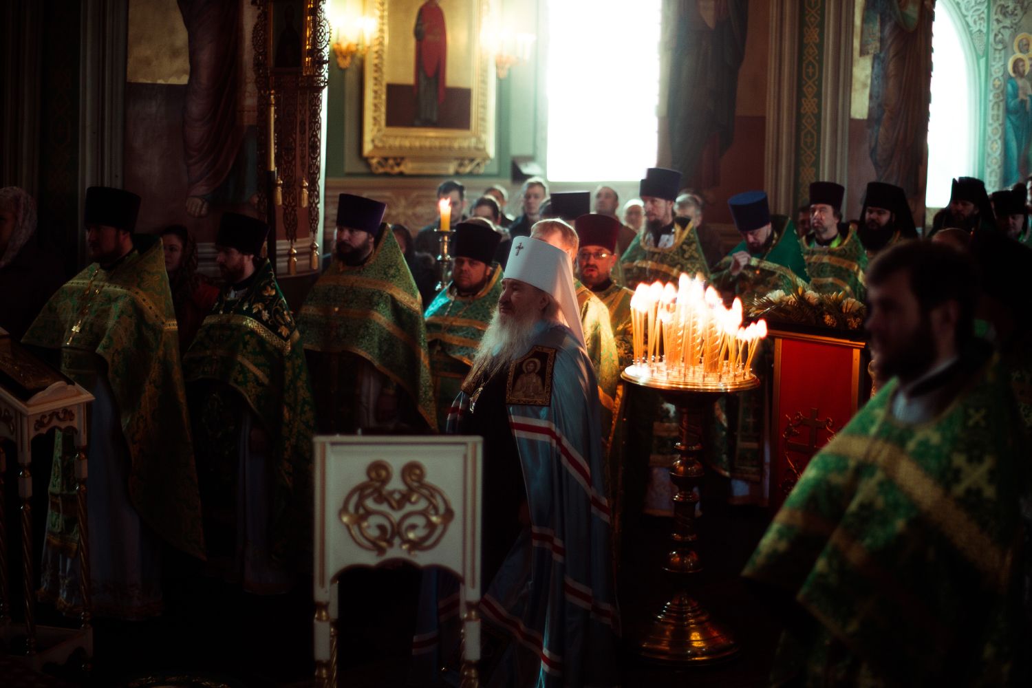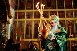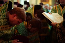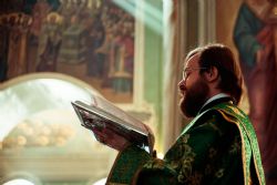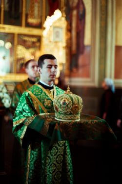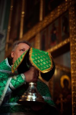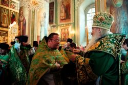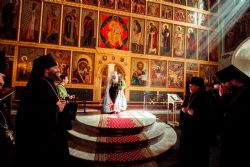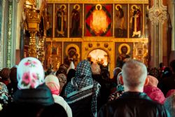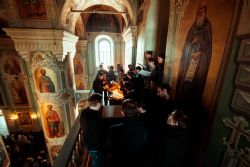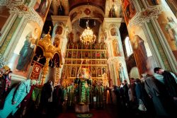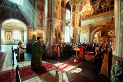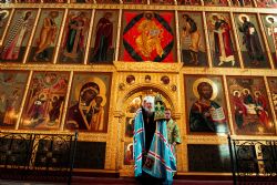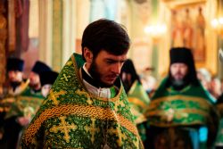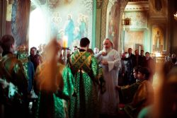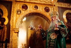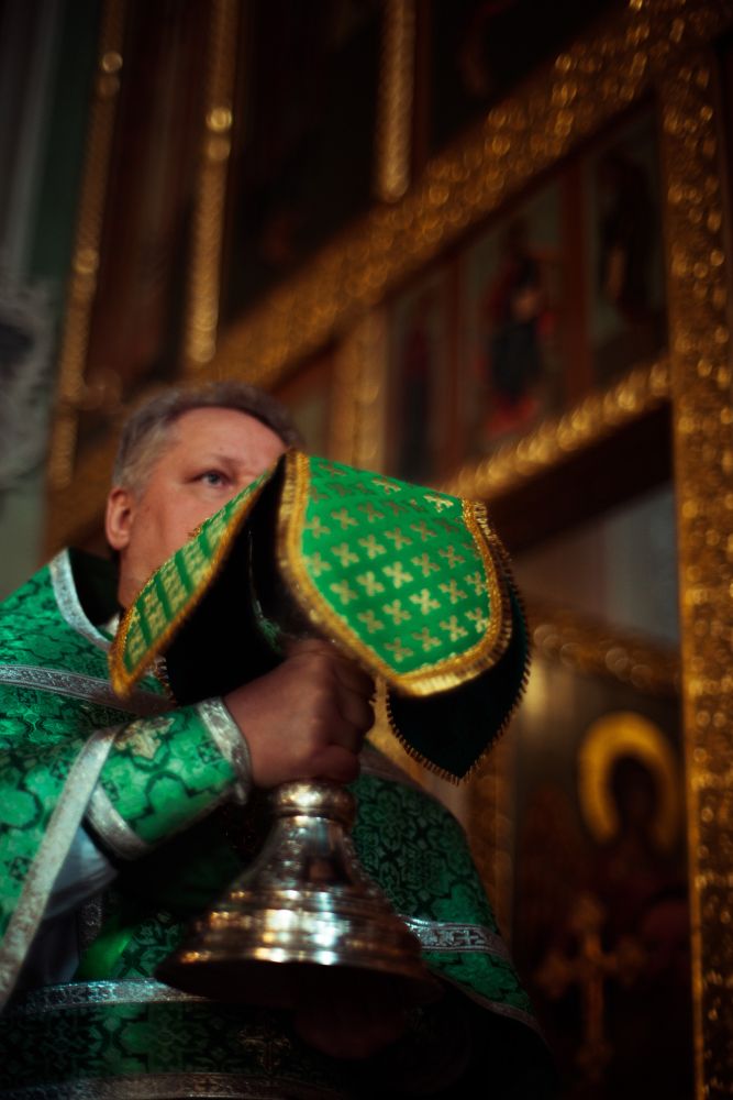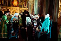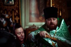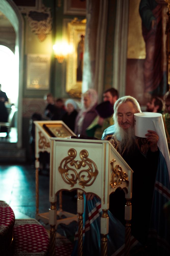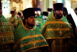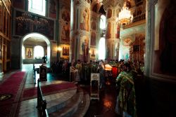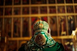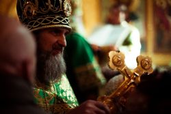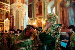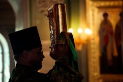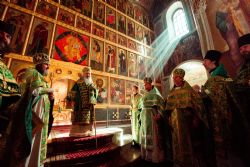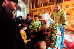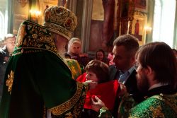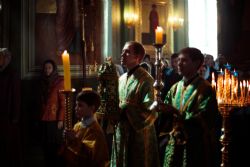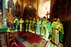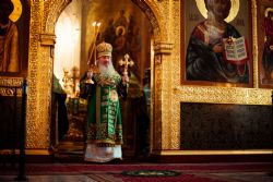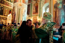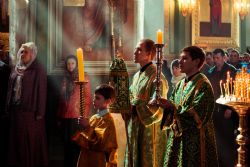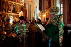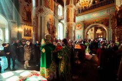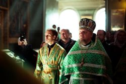 Богослужебные песнопения исполнялись архиерейским мужским хором под управлением Дениса Рогова.