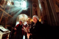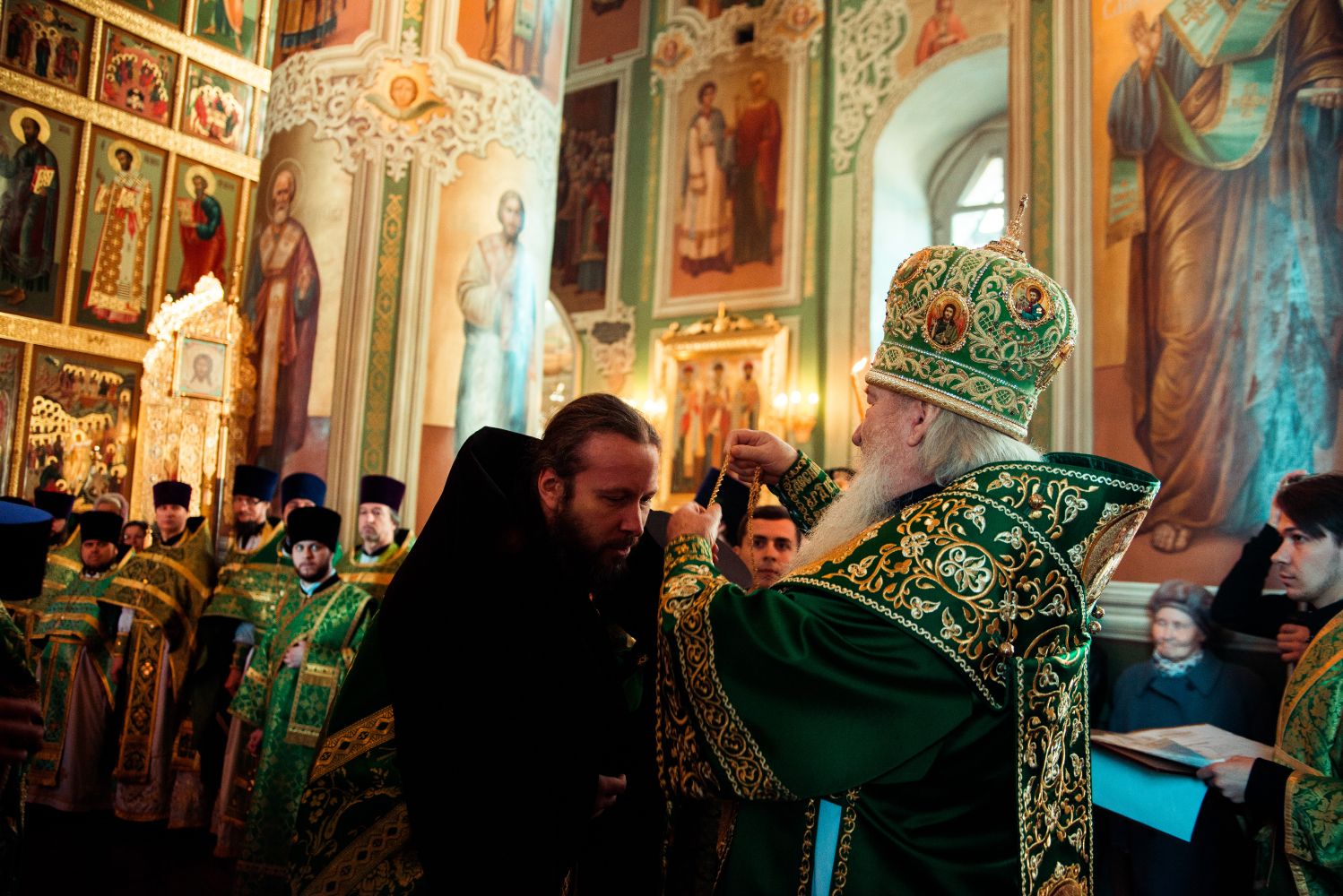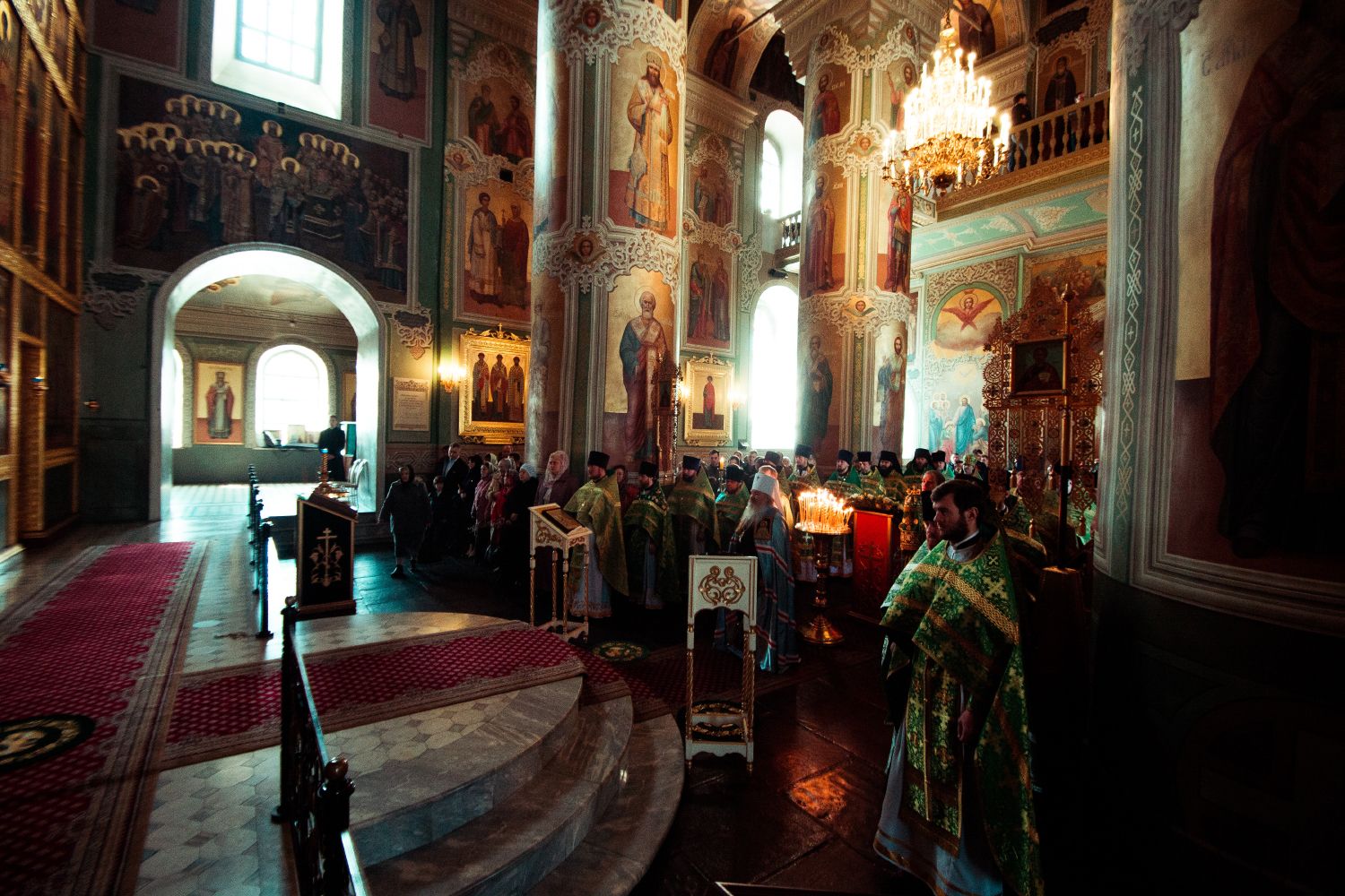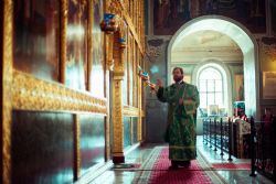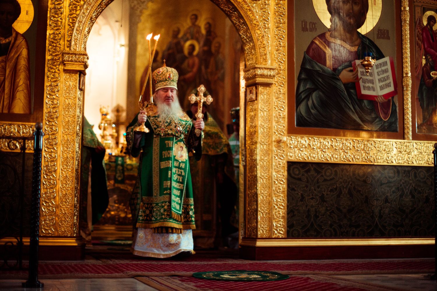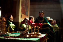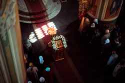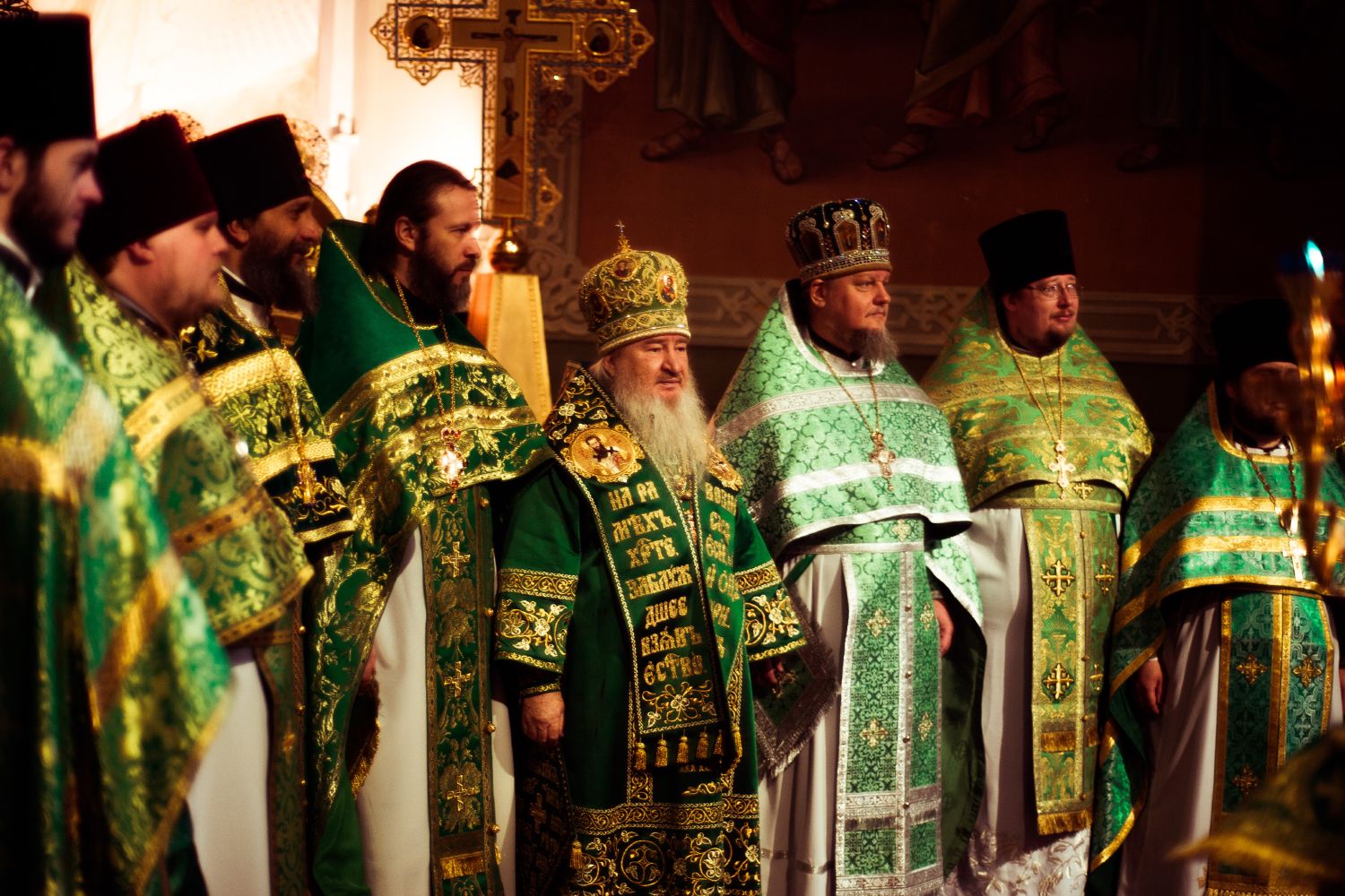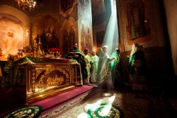 Богослужебные песнопения исполнялись архиерейским мужским хором под управлением Дениса Рогова.