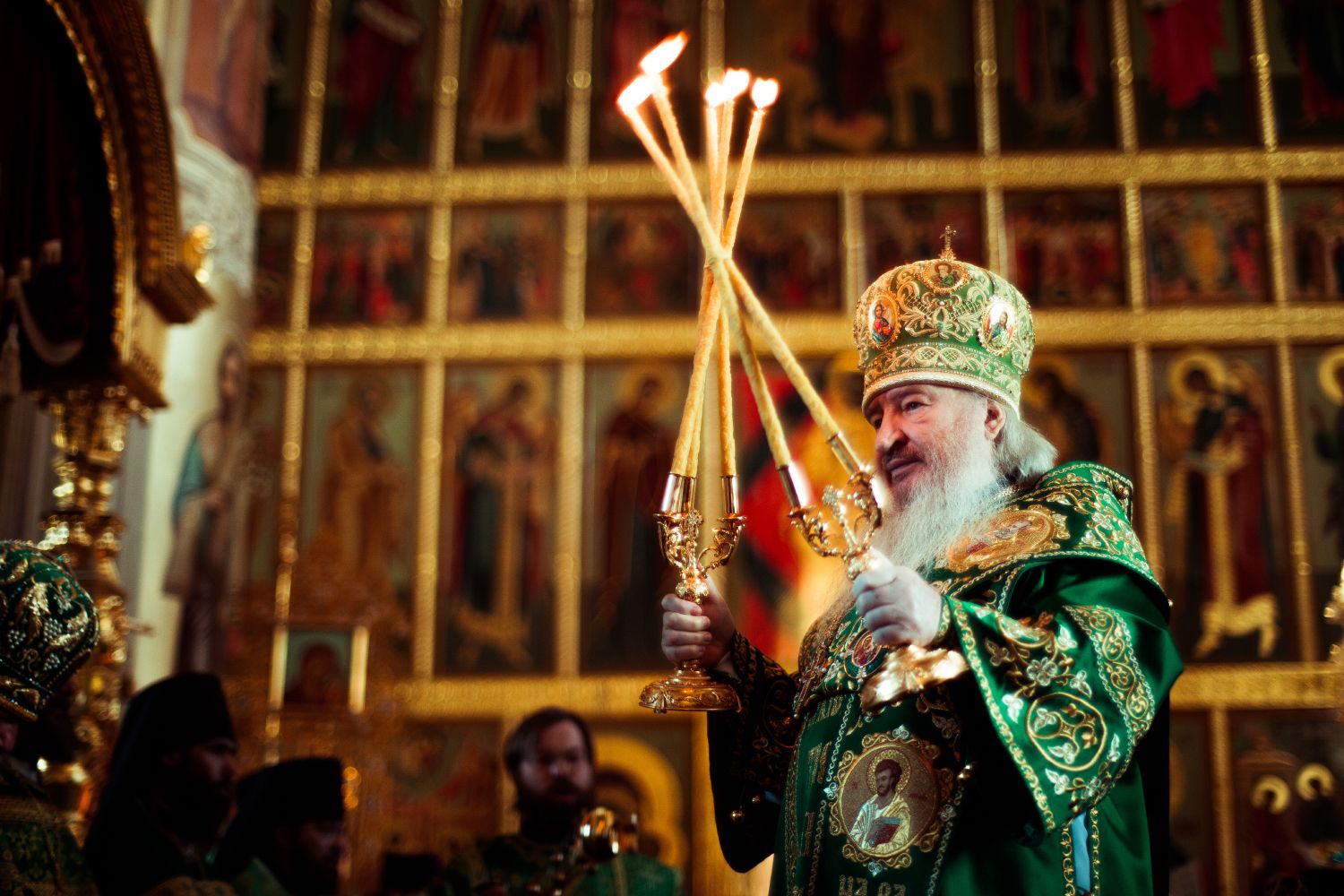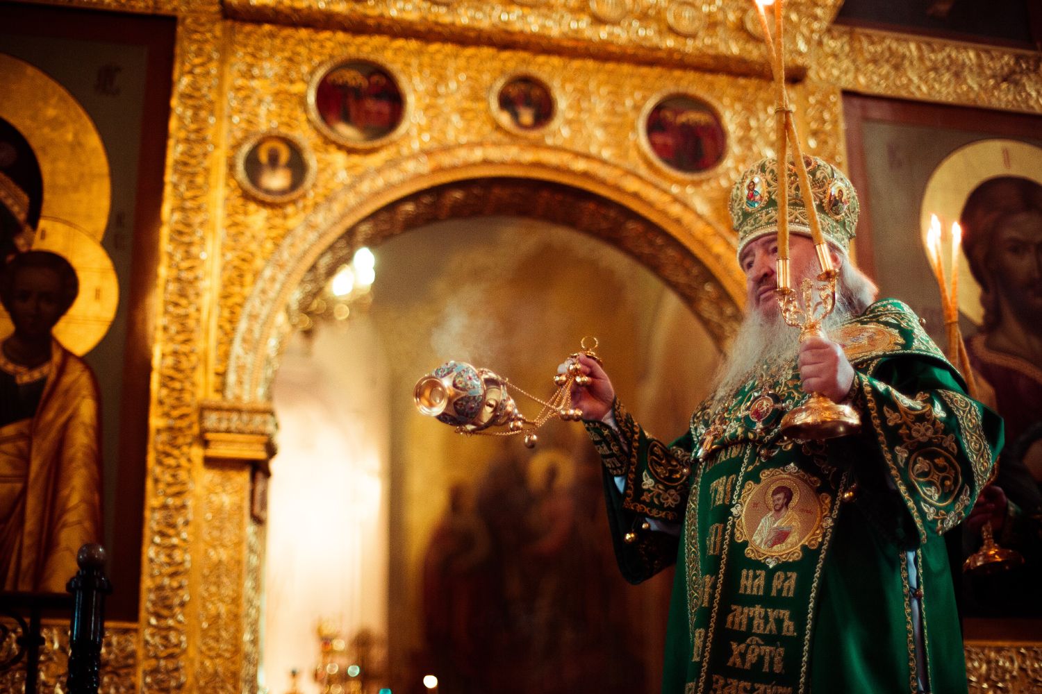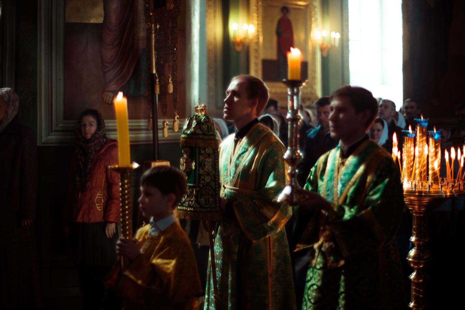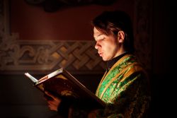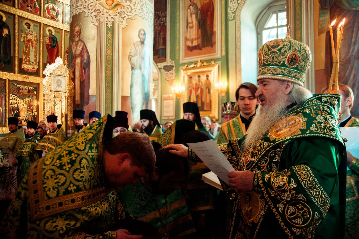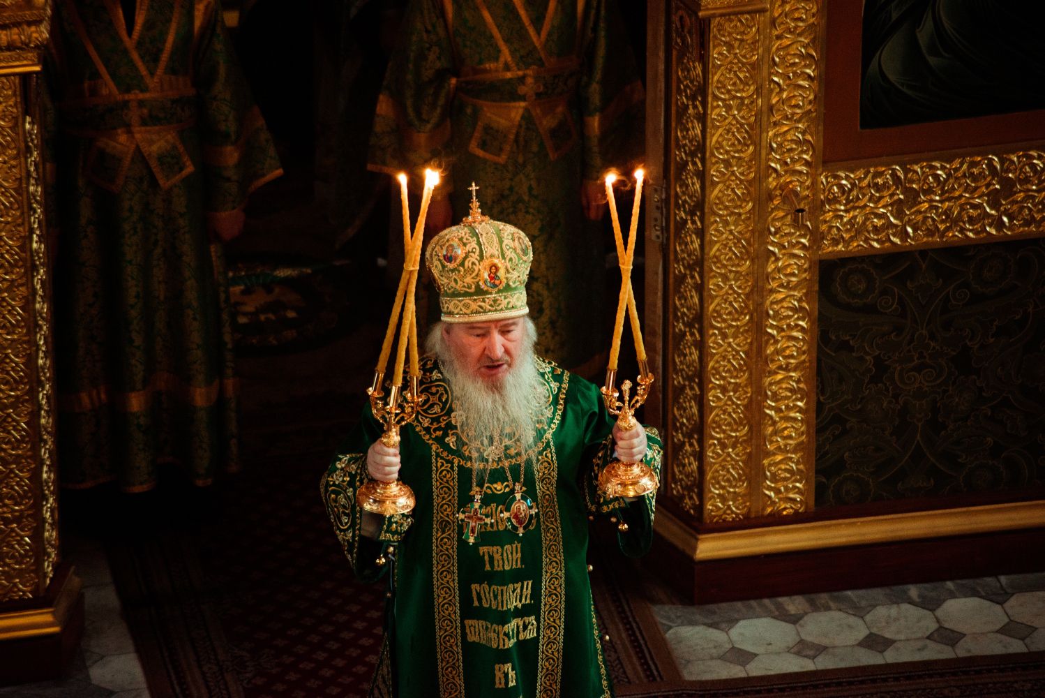 Богослужебные песнопения исполнялись архиерейским мужским хором под управлением Дениса Рогова.