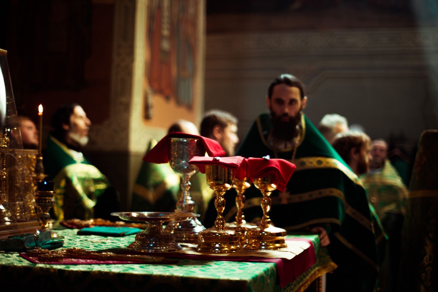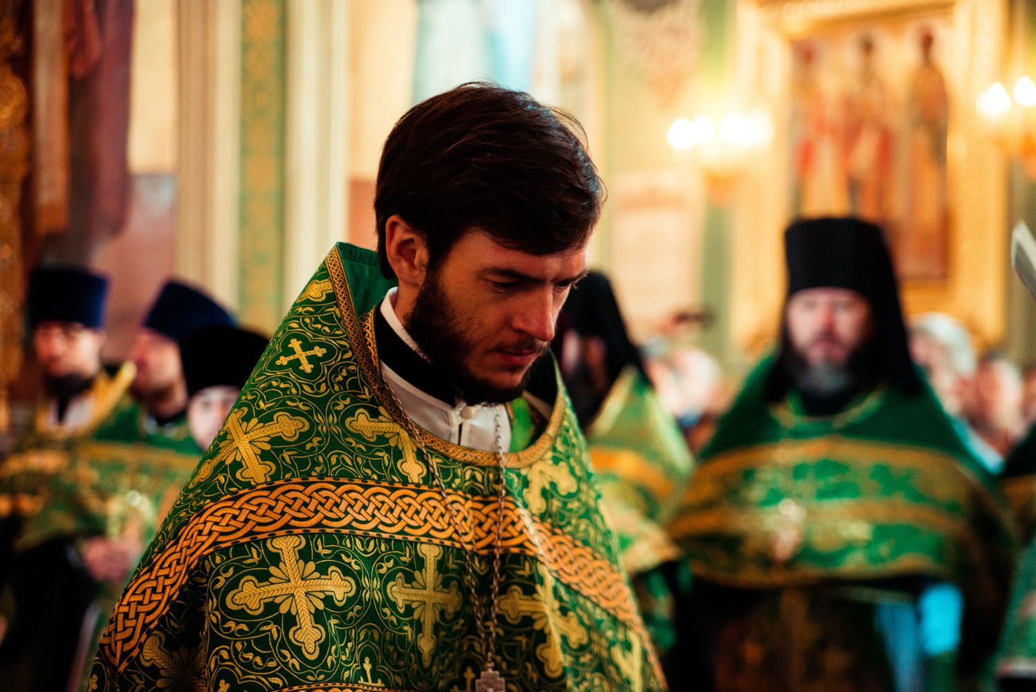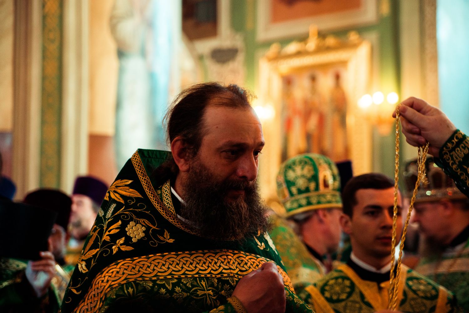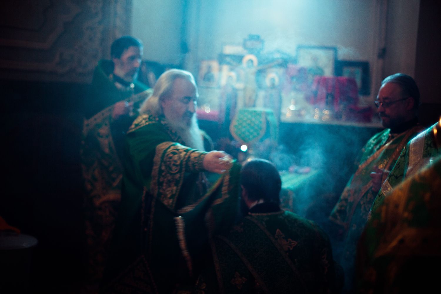 Богослужебные песнопения исполнялись архиерейским мужским хором под управлением Дениса Рогова.