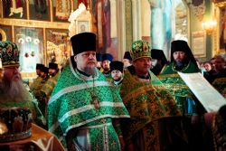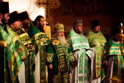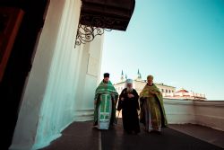 За праздничным богослужением Его Высокопреосвященству сослужили настоятели и наместники монастырей Казанской епархии, благочинные церковных округов, настоятели храмов столицы Татарстана.