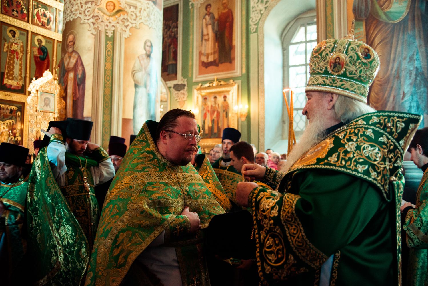 На малом входе за усердное служение Церкви Божией ряду клириков Казанской епархии ко дню Святой Пасхи были вручены церковные награды.