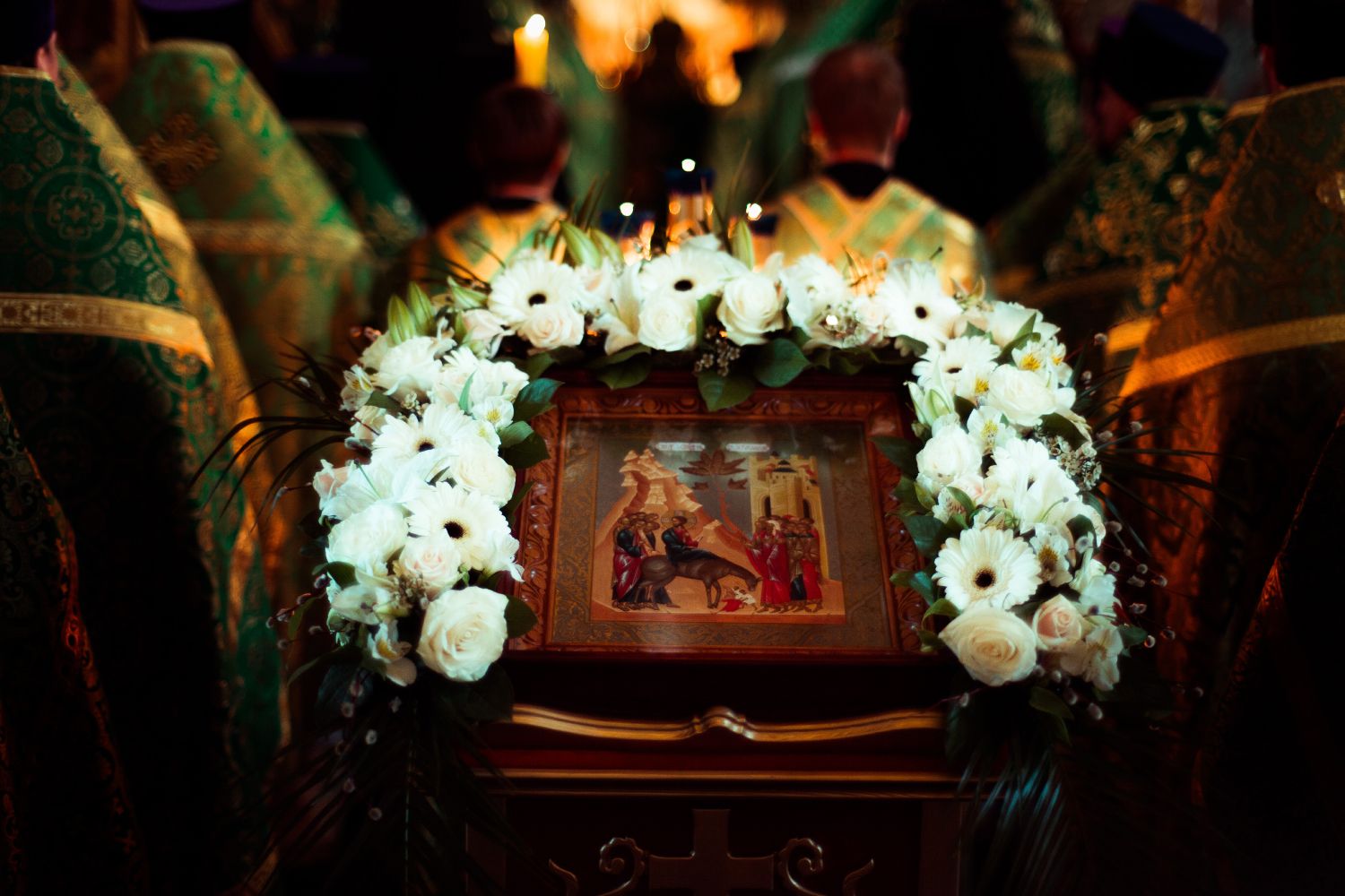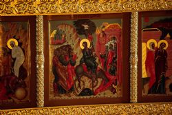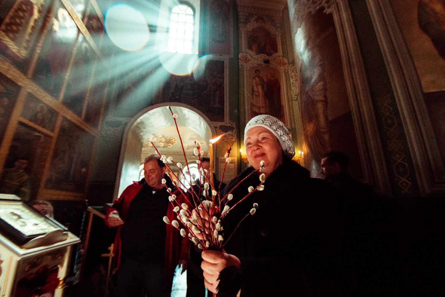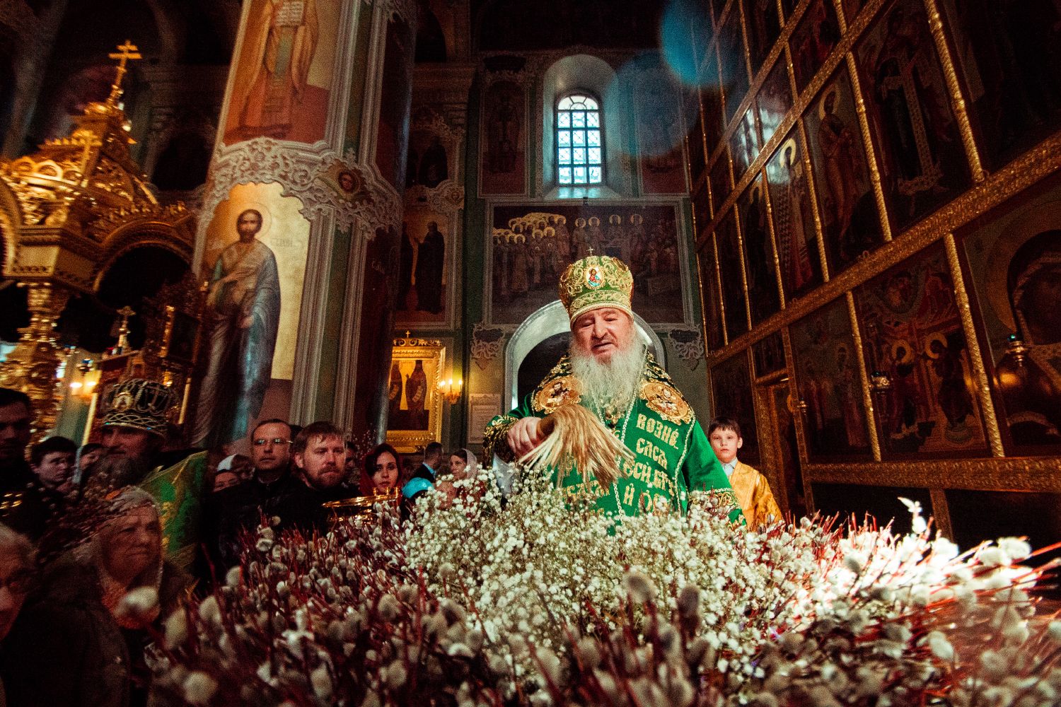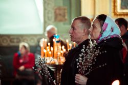 В завершение богослужения духовенством было совершено славление перед иконой праздника Входа Господня в Иерусалим. Затем митрополит Феофан освятил вербы.