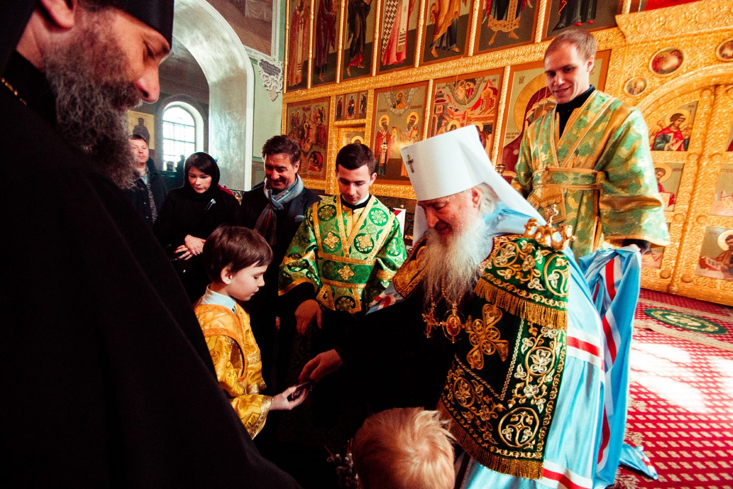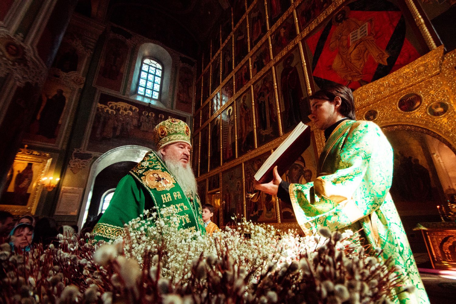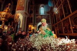 «Сердечно поздравляю вас с праздником Входа Господня в Иерусалим, — обратился владыка митрополит к участникам службы. — В этот праздник мы вспоминаем, как дети пришли прославить Христа, входящего в Иерусалим.