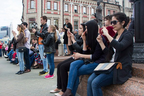 Танцевальный флешмоб состоялся в разгар празднований в самом центре города — на улице Баумана. Возле колокольни Богоявленского собора православная молодежь Казани в творческой форме почтила память всех, кто отдал свои жизни за победу, всех, кто помог избавиться от фашистских захватчиков, всех, кто подарил нам мирную жизнь.