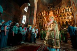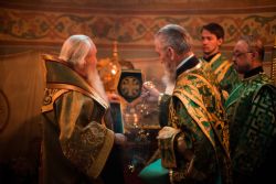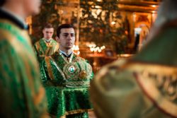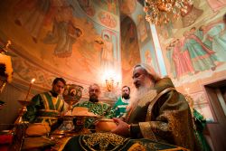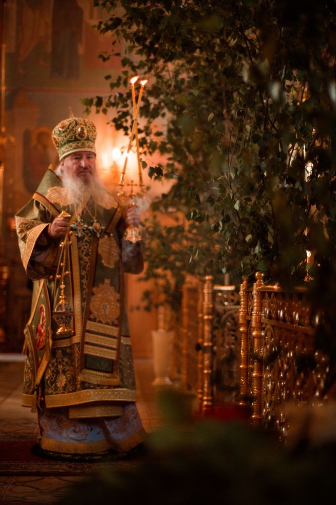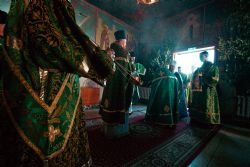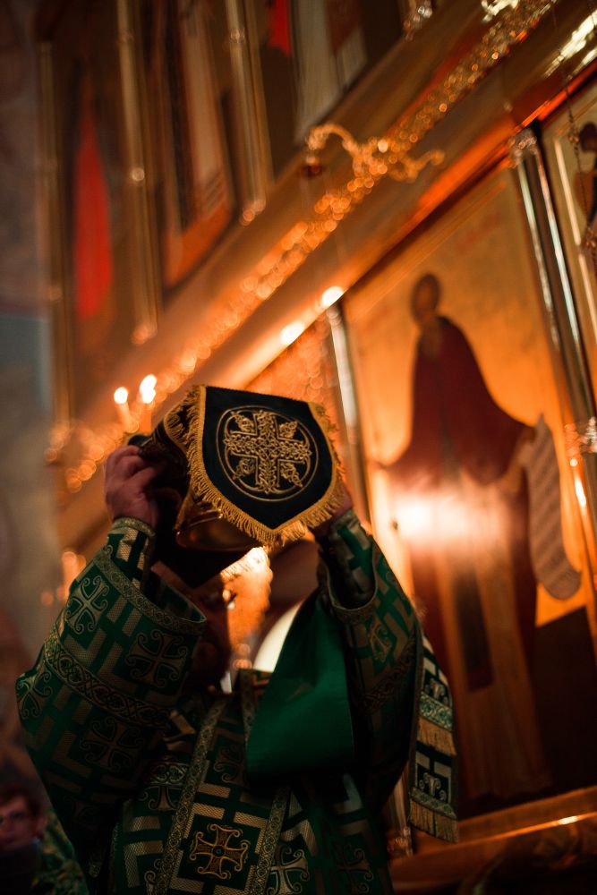 На великой вечерне духовенством и хором был пропет прокимен «Кто Бог велий…» Затем владыка Феофан и сослужившее Его Высокопреосвященству духовенство совершили уставное чтение коленопреклонных молитв.