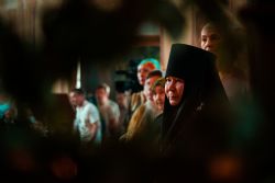 По окончании богослужения Его Высокопреосвященство ответил на вопросы представителей средств массовой информации.