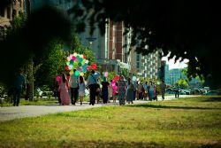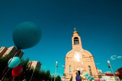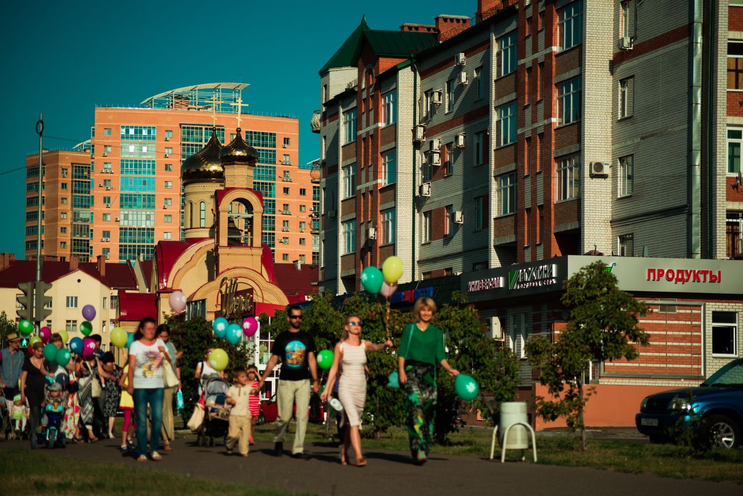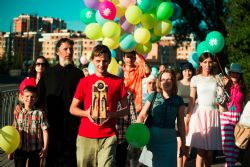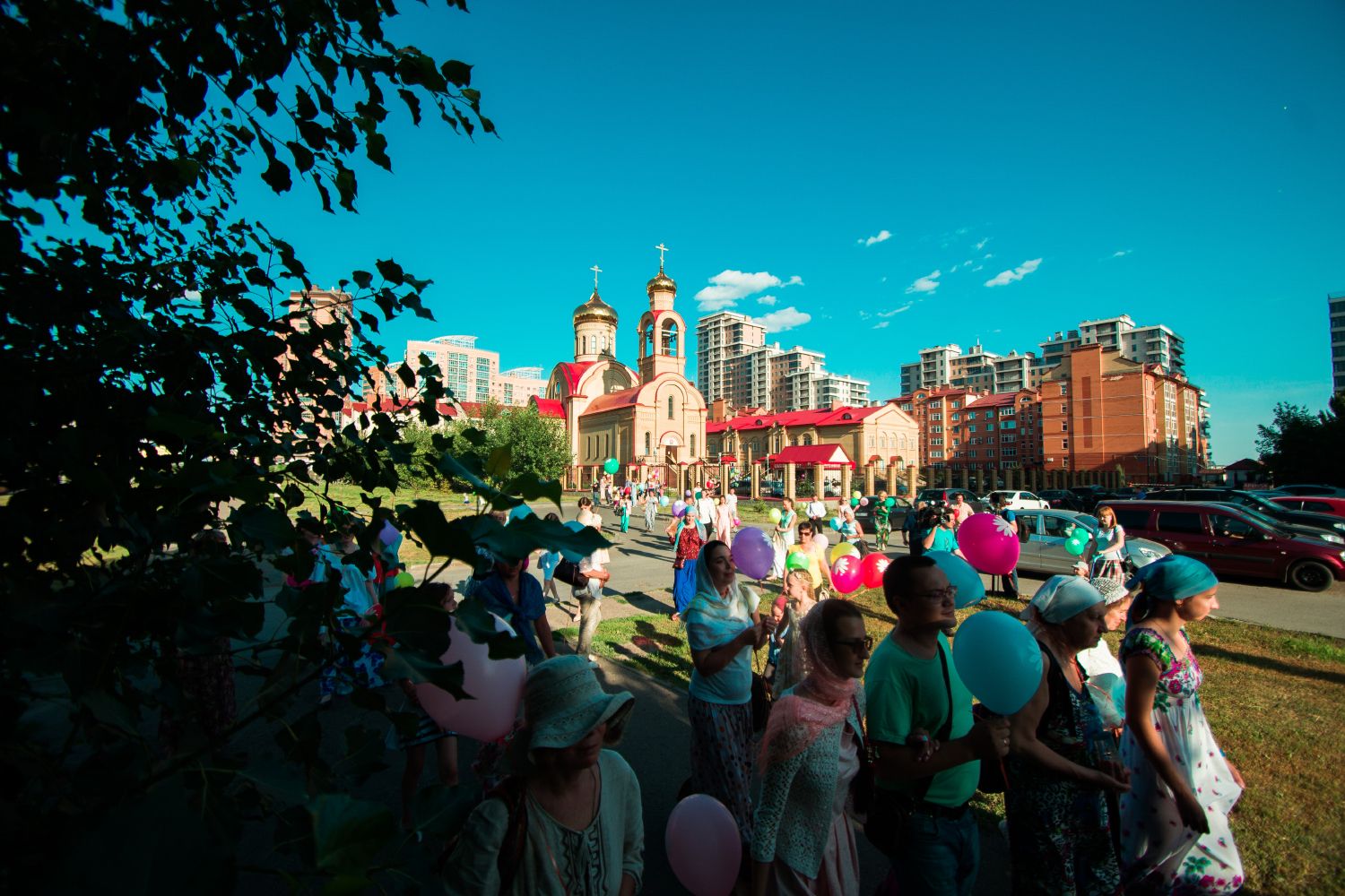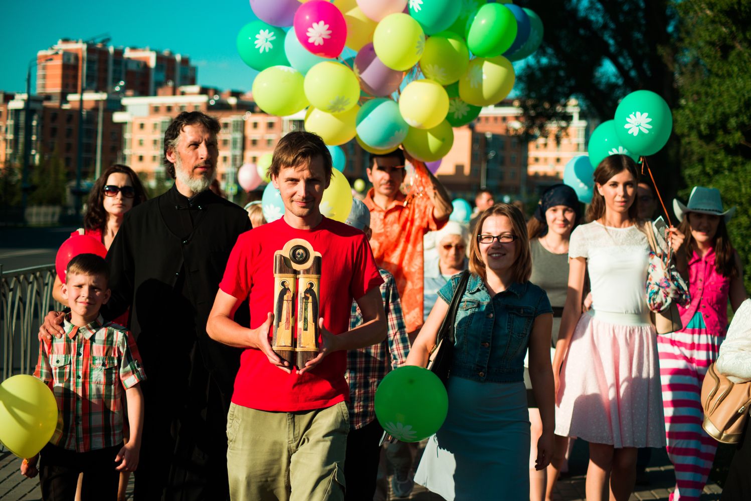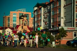 После соборной молитвы в архиерейском подворье священномученика Кирилла Казанского на улицах Казани появились люди с яркими шарами, на которые была нанесена символика праздника — ромашки. Колонна, которую возглавил иерей Константин Колыганов, отправилась к центру семьи «Казан». Рядом с ним шли мамы и папы с колясками, подростки и молодые люди.