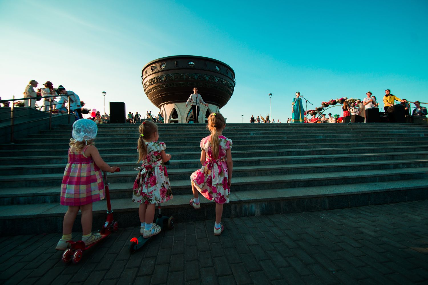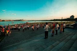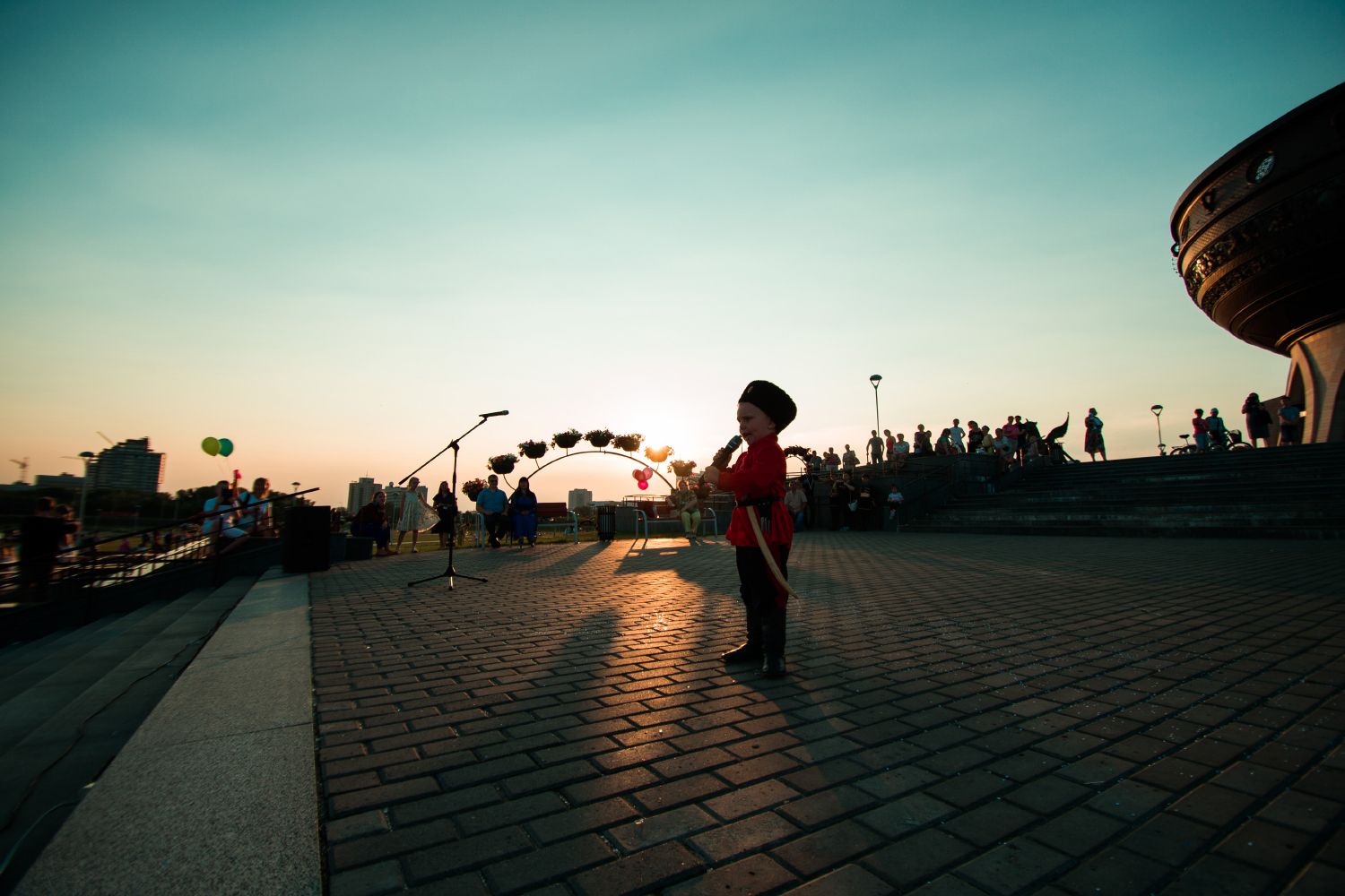 Монолог богатыря в исполнении самого юного артиста — 4-летнего Ивана Шуварова, зажигательная лезгинка, душевные песни о семье, любви и верности — этим и многим другим проникались гости концерта на уютной площадке около центра семьи «Казан». Тут же расположилась и ярмарка — все желающие могли обучиться азам рисования, поучаствовать в казачьих играх, открыть для себя лоскутное шитье, а затем подкрепиться вкусными угощениями, приготовленными в пекарне Казанского Богородицкого монастыря. Таким образом на протяжении нескольких вечерних часов воскресенья люди разных поколений, профессий и взглядов радовались общению и делились впечатлениями друг с другом. Одним из самых ярких, по признанию зрителей, было выступление Государственного фольклорного ансамбля кряшен «Бермянчек». От его заводных ритмов в пляс пустились все.