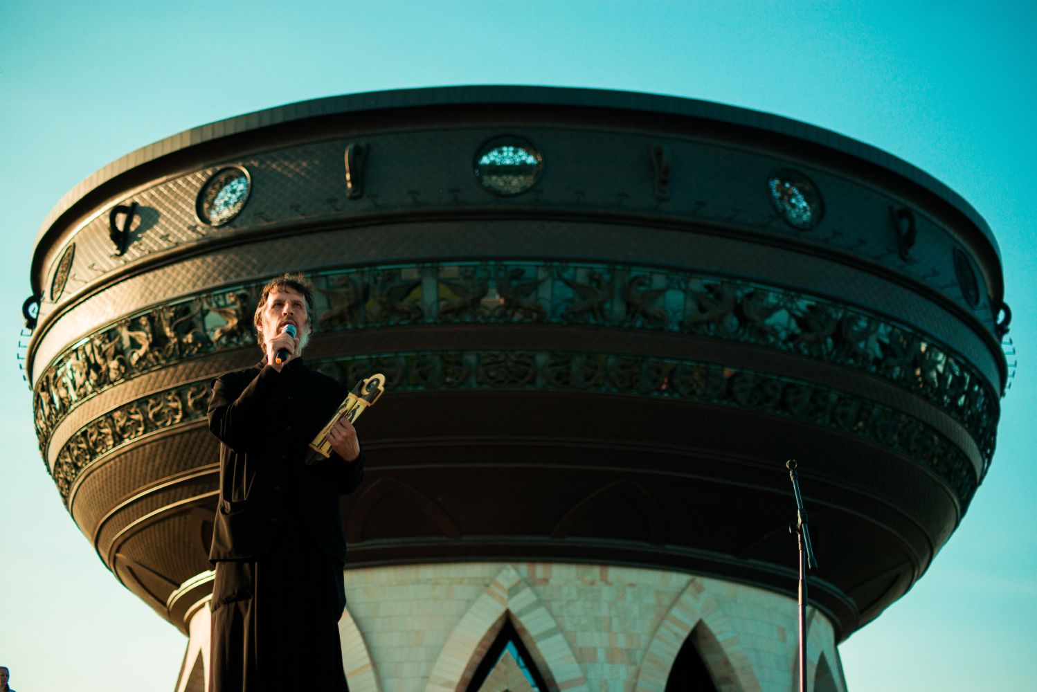 Беречь друг друга и жить в любви и согласии — с гимна семьи в исполнении Никиты Яроша и Елены Галиуллиной началась концертная программа. После этого с приветственным словом к гостям обратился наместник Благовещенского собора Казани иерей Константин Колыганов.